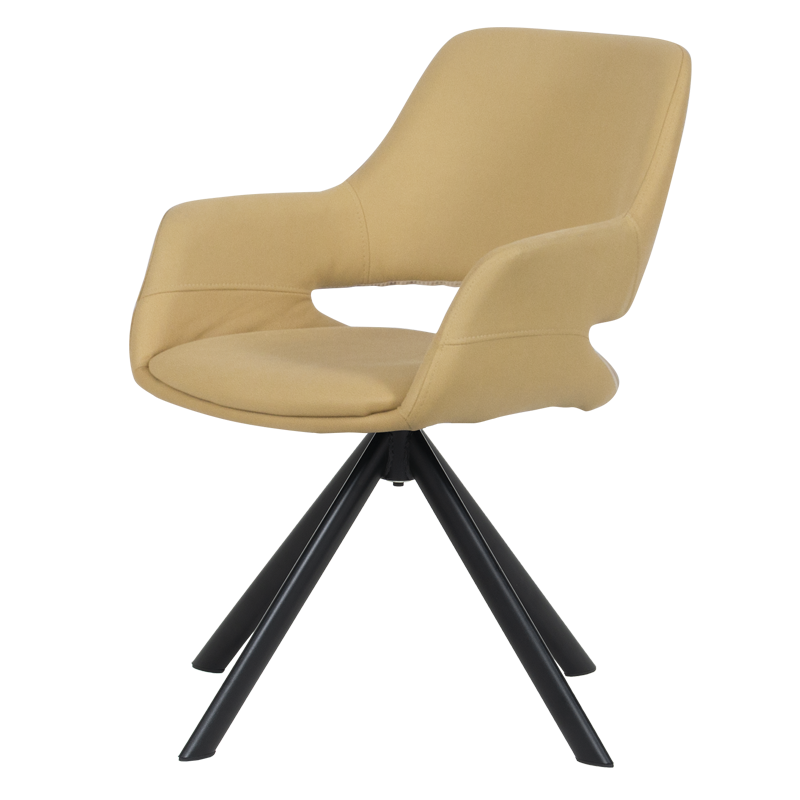 DEVON е трапезен стол с модерен дизайн, нестандартни крака и функция за въртене на седалката на 360°. Изработен е от висококачествена дамаска и крака от праховобоядисан метал. Пълна информация за размерите и характеристиките на модела ще намерите в таблицата в таб/поле "Техническа информация".