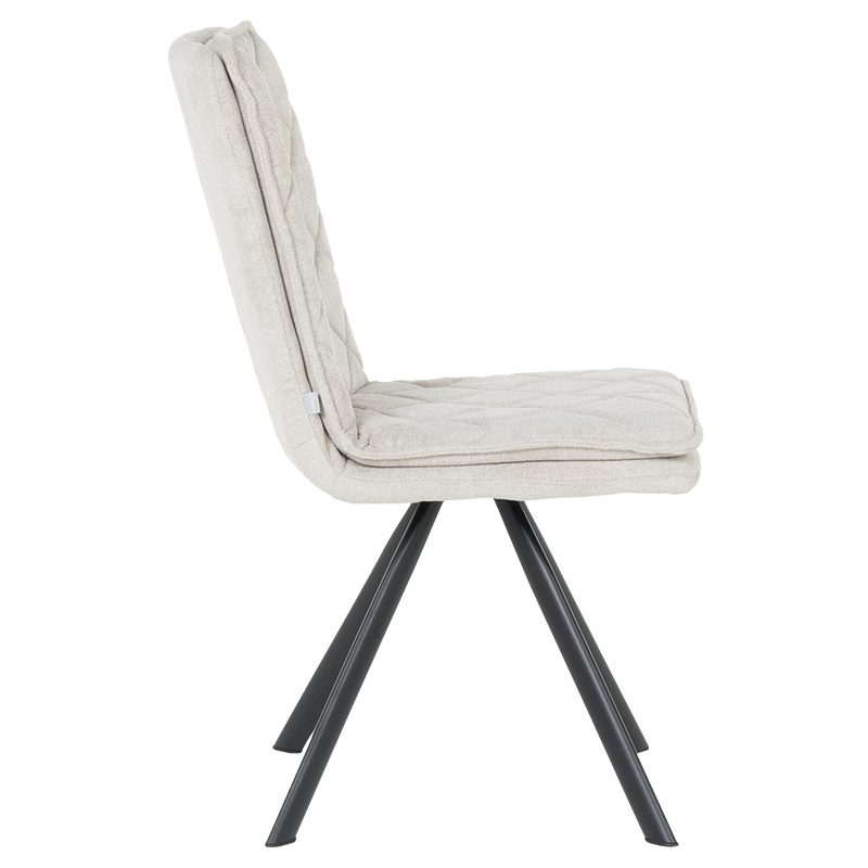 Трапезният стол ELY N впечатлява със своята хармония между комфорт и изискан дизайн. Седалката и облегалката са облечени във висококачествена дамаска с текстура, наподобяваща нежна и релефна памучна хавлиена материя, която създава усещане за уют и мекота при допир. Черната метална основа, изработена от праховобоядисан метал, добавя стабилност и модерен акцент към цялостната визия на стола, правейки го подходящ избор за всяка трапезария с характер. Пълна информация за размерите и характеристиките на модела ще намерите в таблицата в таб/поле "Техническа информация".