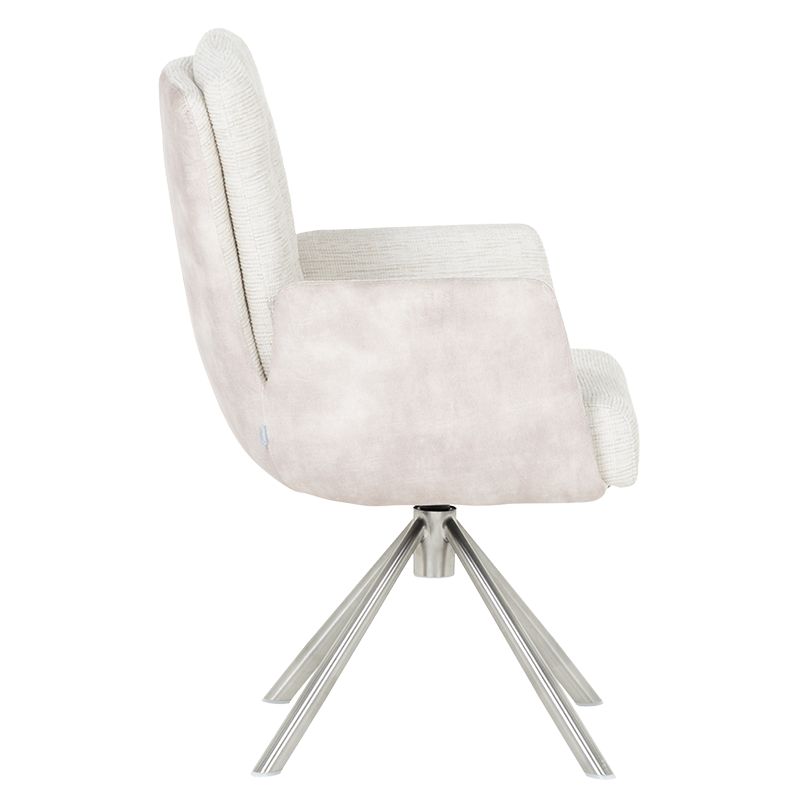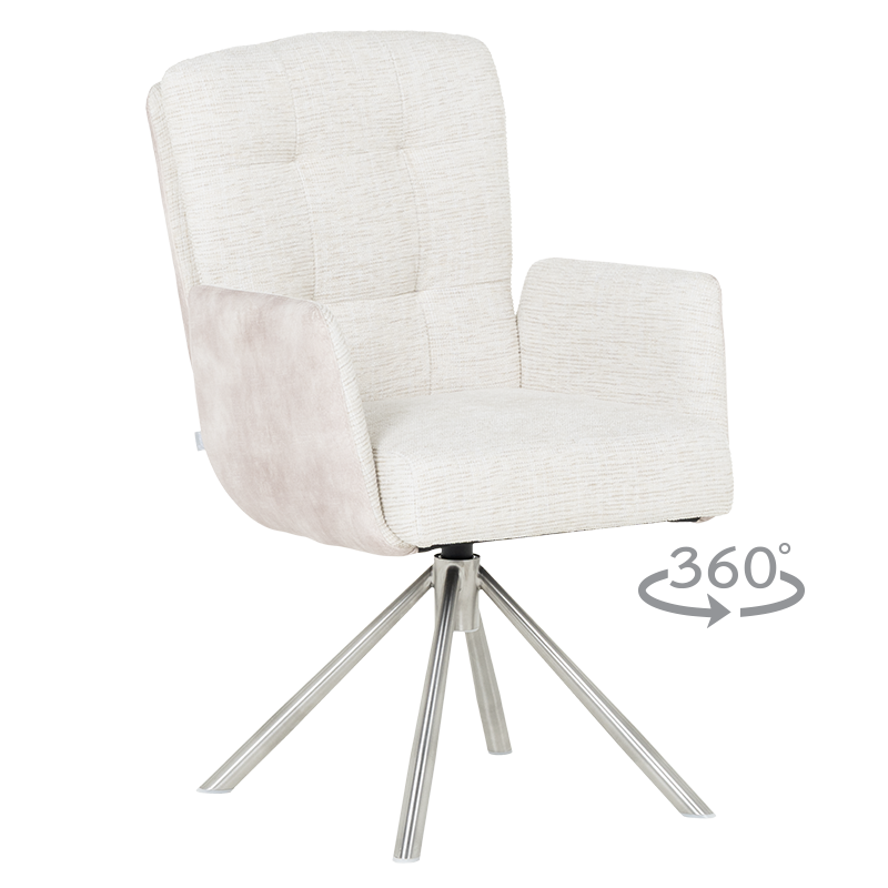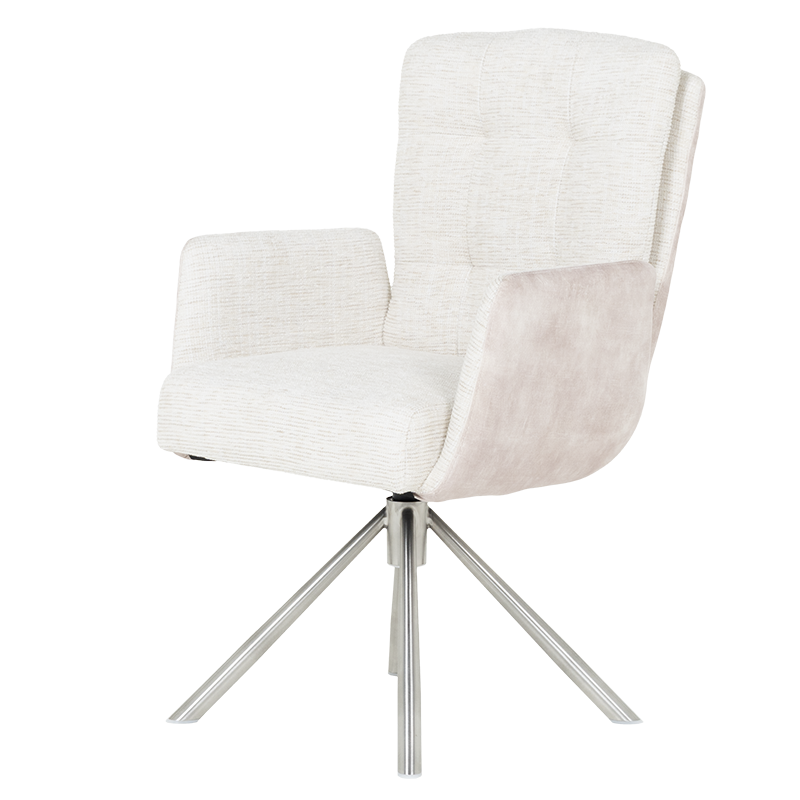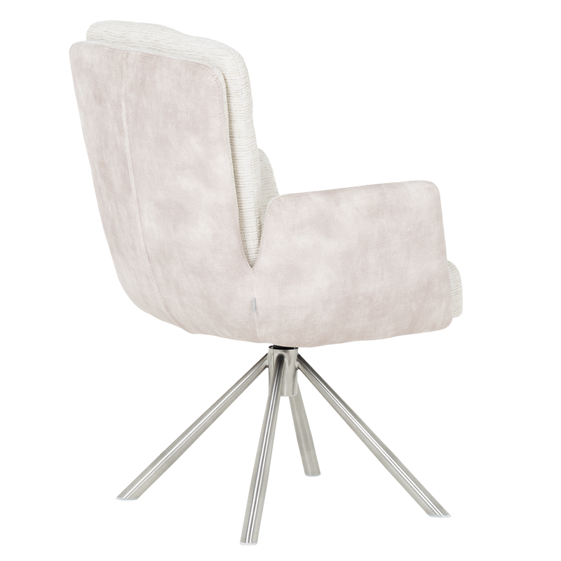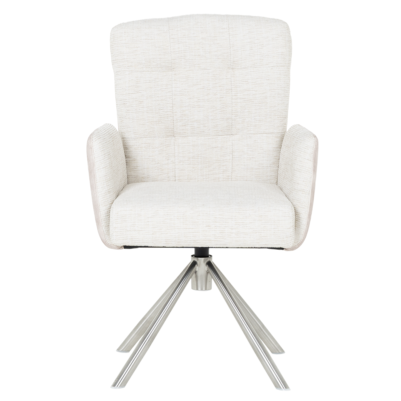 Трапезният стол KEILA предлага перфектен баланс между модерен дизайн и изключителна функционалност. Седалката, тапицирана с висококачествена дамаска и оборудвана с покет пружини, осигурява ненадминат комфорт, а подлакътниците допълват усещането за уют. Релакс облегалката с накланяне назад е ключова функция, която осигурява допълнително удобство за почивка и релаксация. Краката от неръждаема стомана не само придават елегантен външен вид, но и гарантират стабилност. KEILA е проектиран да издържа до 120 кг, което го прави здрав и надежден избор за всяка модерна трапезария, съчетавайки комфорт и стил. Пълна информация за размерите и характеристиките на модела ще намерите в таблицата в таб/поле "Техническа информация".
