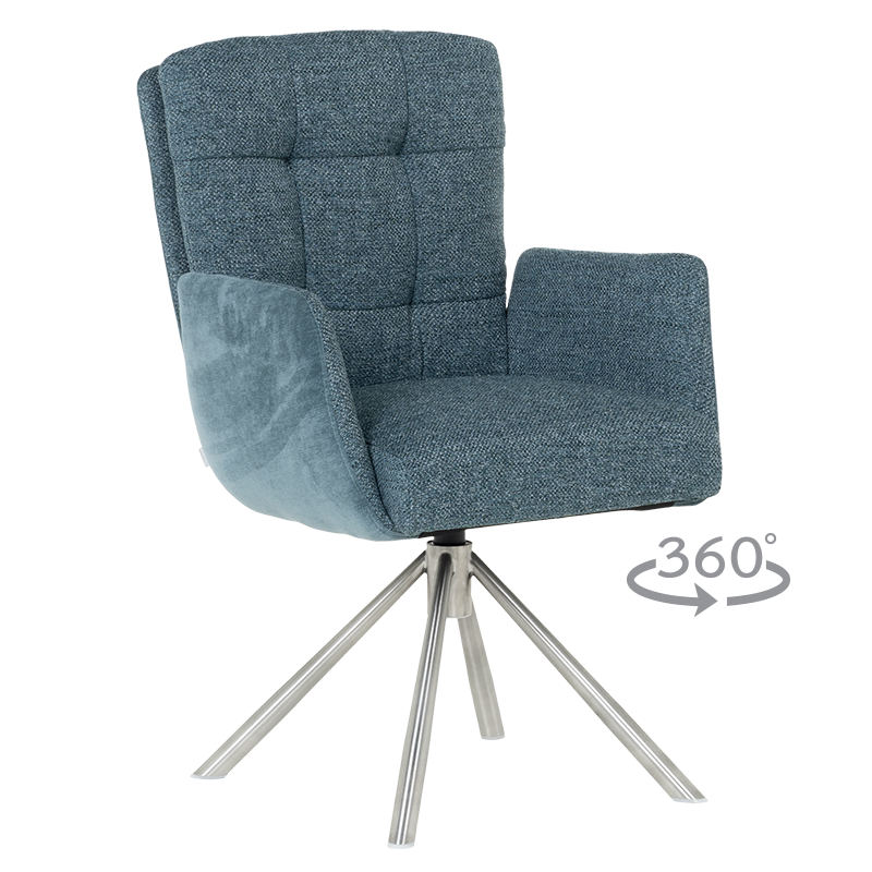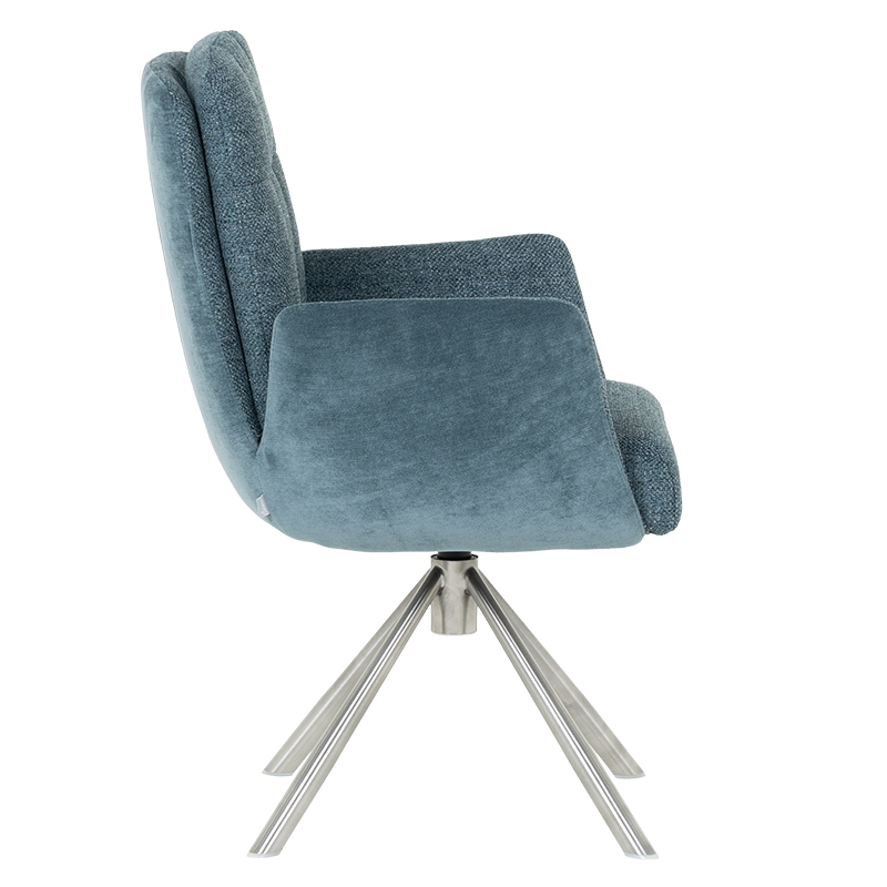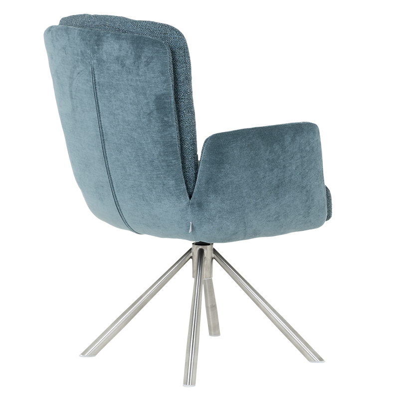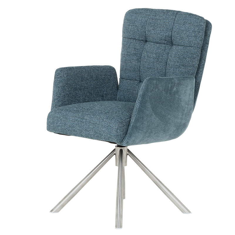 Трапезният стол KEILA предлага перфектен баланс между модерен дизайн и изключителна функционалност. Седалката, тапицирана с висококачествена дамаска и оборудвана с покет пружини, осигурява ненадминат комфорт, а подлакътниците допълват усещането за уют. Релакс облегалката с накланяне назад е ключова функция, която осигурява допълнително удобство за почивка и релаксация. Краката от неръждаема стомана не само придават елегантен външен вид, но и гарантират стабилност. KEILA е проектиран да издържа до 120 кг, което го прави здрав и надежден избор за всяка модерна трапезария, съчетавайки комфорт и стил. Пълна информация за размерите и характеристиките на модела ще намерите в таблицата в таб/поле "Техническа информация".