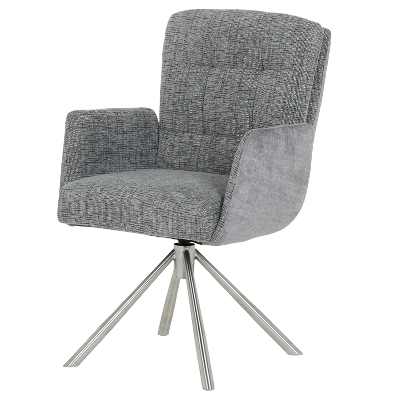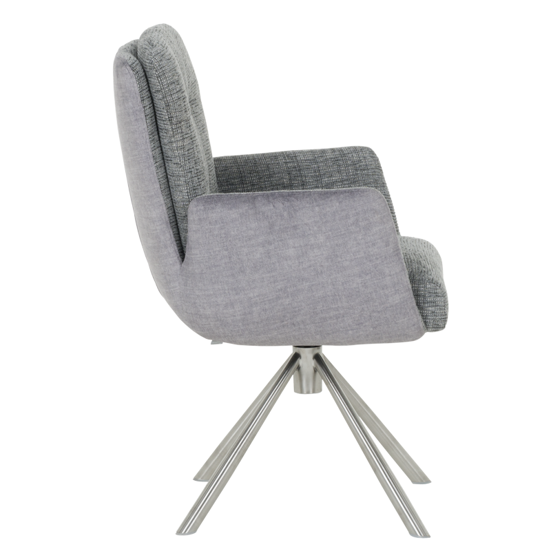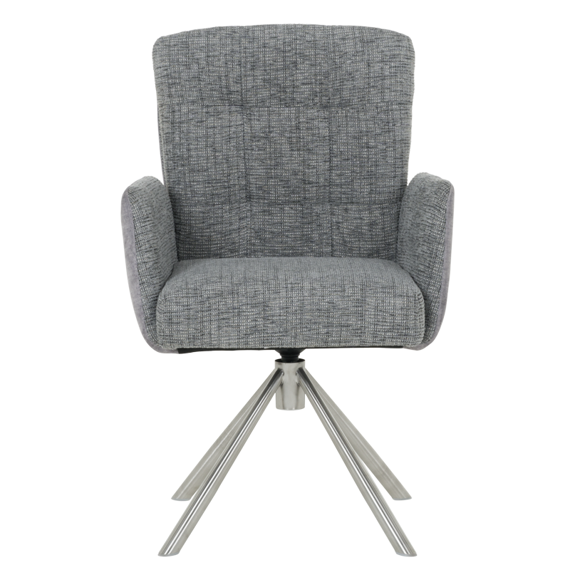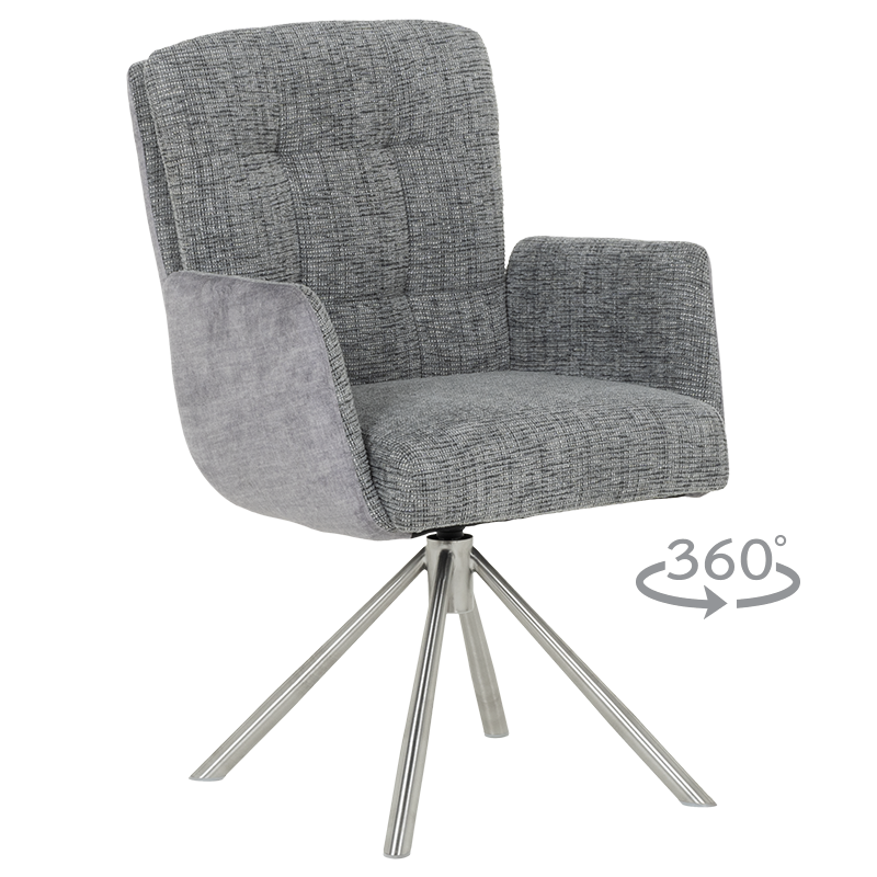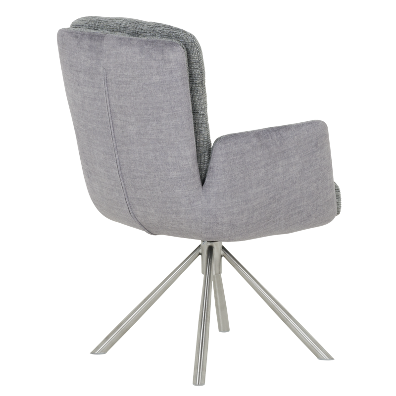 Трапезният стол KEILA предлага перфектен баланс между модерен дизайн и изключителна функционалност. Седалката, тапицирана с висококачествена дамаска и оборудвана с покет пружини, осигурява ненадминат комфорт, а подлакътниците допълват усещането за уют. Релакс облегалката с накланяне назад е ключова функция, която осигурява допълнително удобство за почивка и релаксация. Краката от неръждаема стомана не само придават елегантен външен вид, но и гарантират стабилност. KEILA е проектиран да издържа до 120 кг, което го прави здрав и надежден избор за всяка модерна трапезария, съчетавайки комфорт и стил. Пълна информация за размерите и характеристиките на модела ще намерите в таблицата в таб/поле "Техническа информация".
