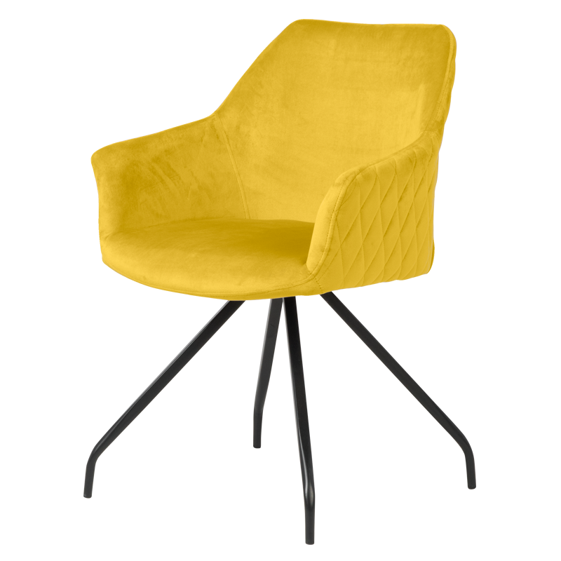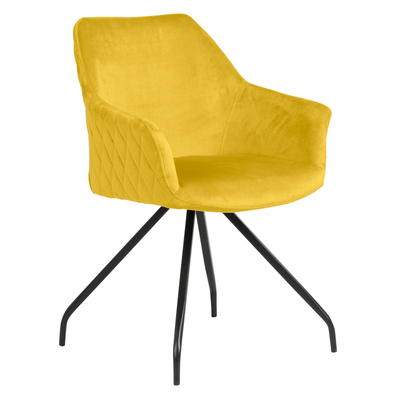 Трапезният стол KENDAL е модел с модерен и стилен дизайн. Той комбинира удобна седалка тип кресло, изработена от нежна дамаска и интересни крака от праховобоядисан метал. Пълна информация за размерите и характеристиките на модела ще намерите в таблицата в таб/поле "Техническа информация".