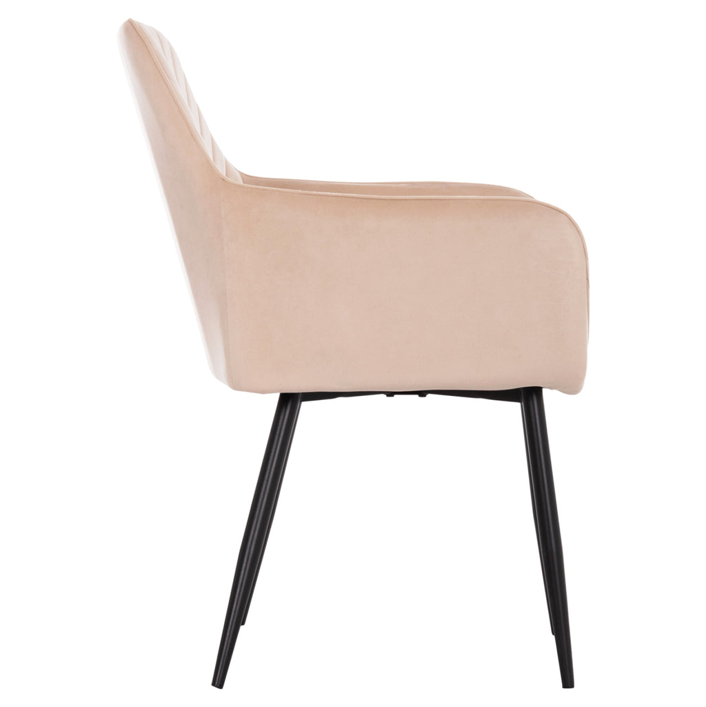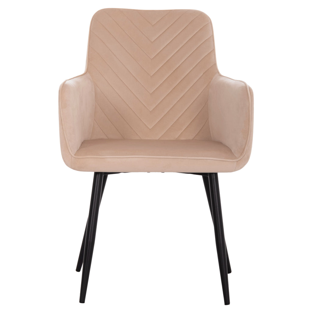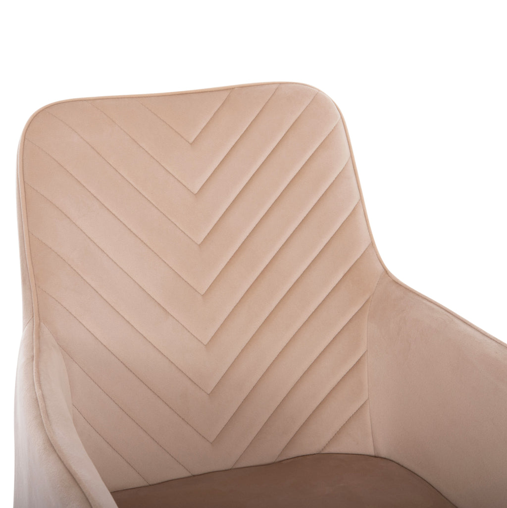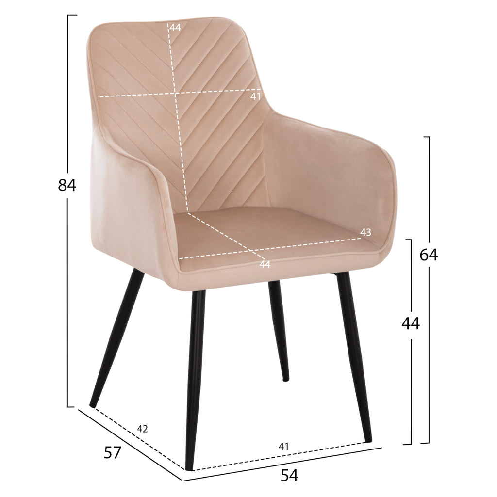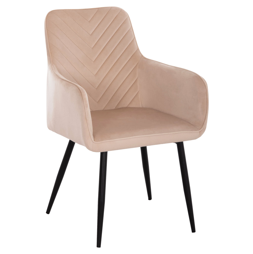 Открийте перфектното съчетание между луксозен комфорт и топла елегантност с трапезния стол LATRELL. Изработен с висококачествена кадифена дамаска в цвят екрю и метални крака, този стол с подлакътници внася светлина и изтънченост във всяко пространство.