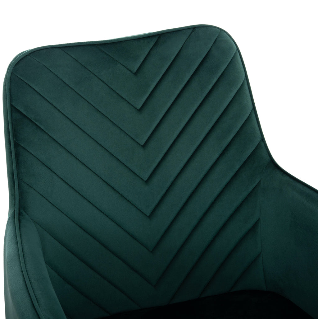 Открийте перфектното съчетание между луксозен комфорт и модерен дизайн с трапезния стол LATRELL. Изработен с висококачествена кадифена дамаска в цвят кипарис и метални крака, този стол с подлакътници внася елегантност и стил във всяко пространство.