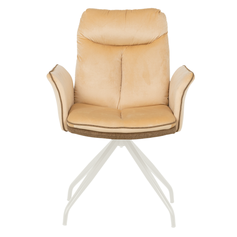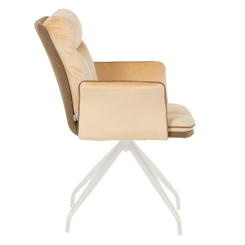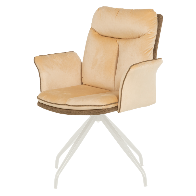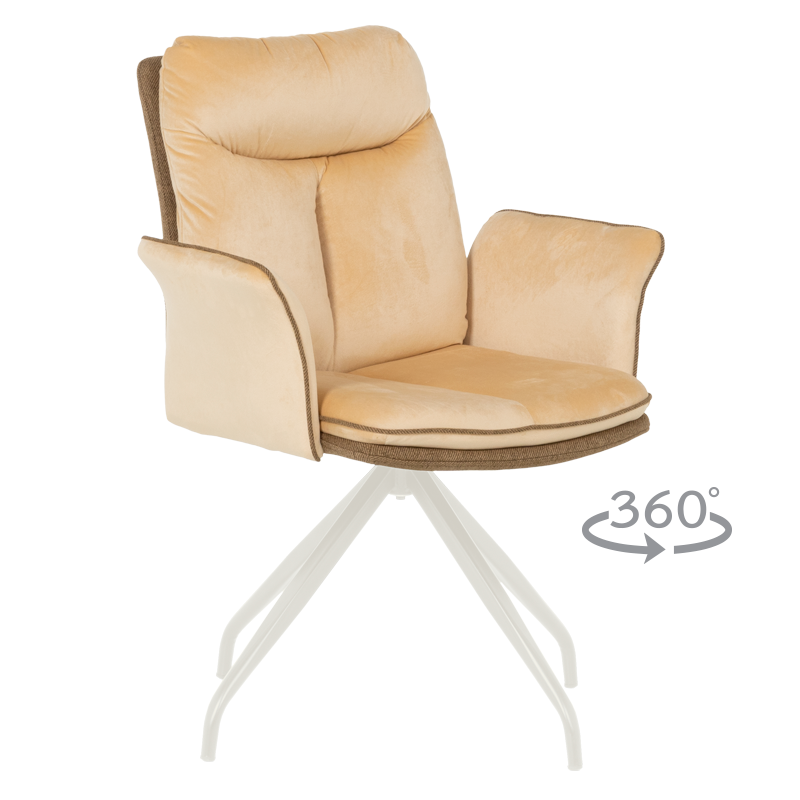 MARLOW 1 е трапезен стол с модерна визия. Той разполага с широки седалка и облегалка, тапицирани в мека дамаска, допълнени с възглавници за максимален комфорт. Подлакътниците повишават удобството на седящия. Основата е изработена от метал в елегантен кремав цвят и предлага иновативна функция за 360° въртене. Пълна информация за размерите и характеристиките на модела ще намерите в таблицата в таб/поле "Техническа информация".