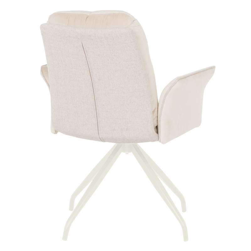 MARLOW 1 е трапезен стол с модерна визия. Той разполага с широки седалка и облегалка, тапицирани в мека дамаска, допълнени с възглавници за максимален комфорт. Подлакътниците повишават удобството на седящия. Основата е изработена от метал в елегантен кремав цвят и предлага иновативна функция за 360° въртене. Пълна информация за размерите и характеристиките на модела ще намерите в таблицата в таб/поле "Техническа информация".