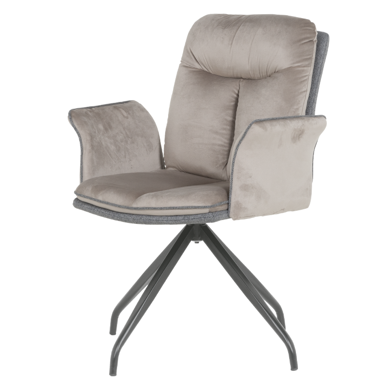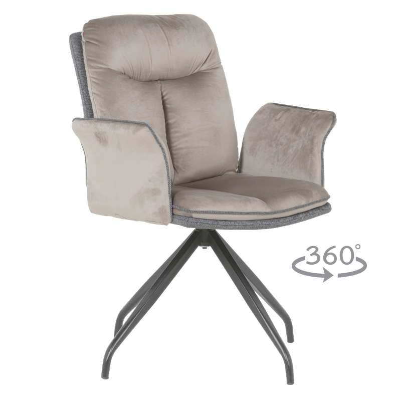 MARLOW 2 е трапезен стол с модерна визия. Той разполага с широки седалка и облегалка, тапицирани в мека дамаска, допълнени с възглавници за максимален комфорт. Подлакътниците повишават удобството на седящия. Основата е изработена от метал в елегантен сив цвят и предлага иновативна функция за 360° въртене. Пълна информация за размерите и характеристиките на модела ще намерите в таблицата в таб/поле "Техническа информация".