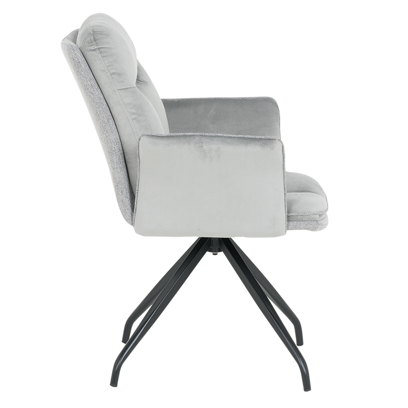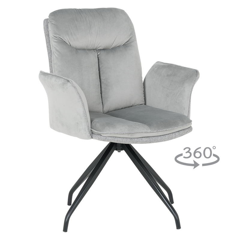 MARLOW 1 е трапезен стол с модерна визия. Той разполага с широки седалка и облегалка, тапицирани в мека дамаска, допълнени с възглавници за максимален комфорт. Подлакътниците повишават удобството на седящия. Основата е изработена от метал в елегантен кремав цвят и предлага иновативна функция за 360° въртене. Пълна информация за размерите и характеристиките на модела ще намерите в таблицата в таб/поле "Техническа информация".