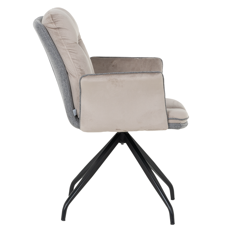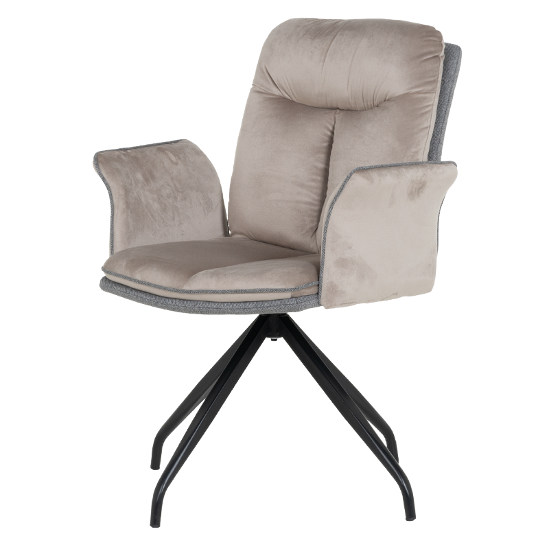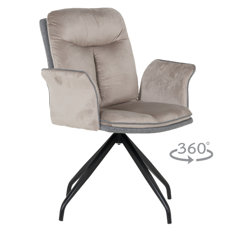 MARLOW 1 е трапезен стол с модерна визия. Той разполага с широки седалка и облегалка, тапицирани в мека дамаска, допълнени с възглавници за максимален комфорт. Подлакътниците повишават удобството на седящия. Основата е изработена от метал в елегантен кремав цвят и предлага иновативна функция за 360° въртене. Пълна информация за размерите и характеристиките на модела ще намерите в таблицата в таб/поле "Техническа информация".
