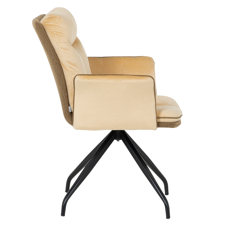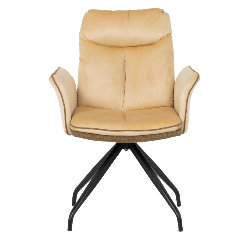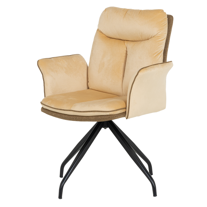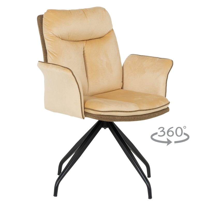 MARLOW 1 е трапезен стол с модерна визия. Той разполага с широки седалка и облегалка, тапицирани в мека дамаска, допълнени с възглавници за максимален комфорт. Подлакътниците повишават удобството на седящия. Основата е изработена от метал в елегантен кремав цвят и предлага иновативна функция за 360° въртене. Пълна информация за размерите и характеристиките на модела ще намерите в таблицата в таб/поле "Техническа информация".