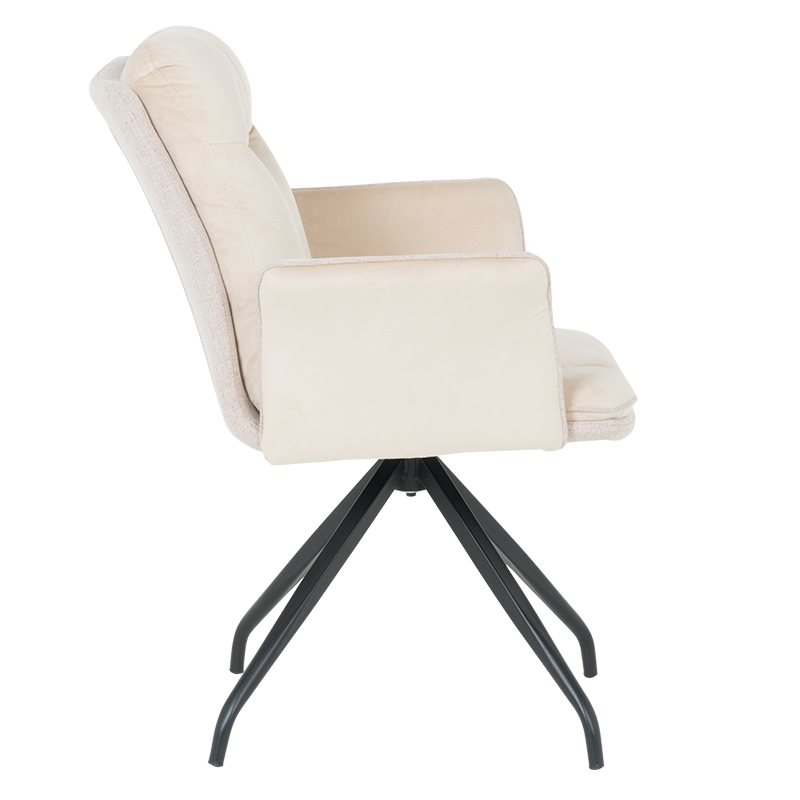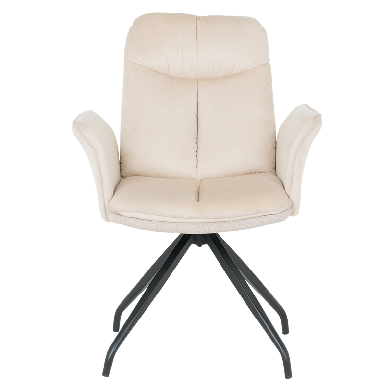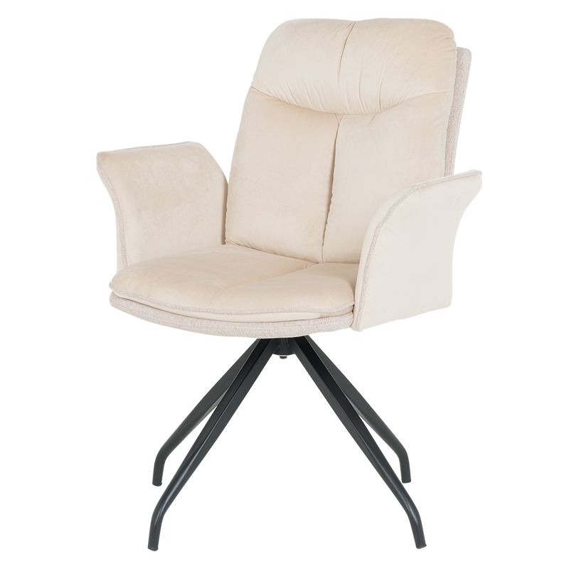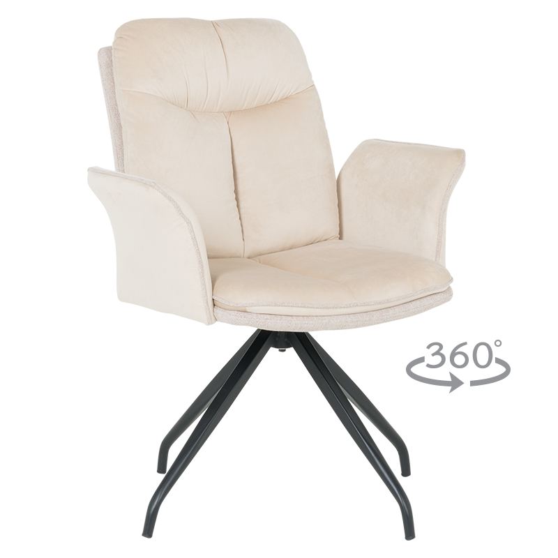 MARLOW 1 е трапезен стол с модерна визия. Той разполага с широки седалка и облегалка, тапицирани в мека дамаска, допълнени с възглавници за максимален комфорт. Подлакътниците повишават удобството на седящия. Основата е изработена от метал в елегантен кремав цвят и предлага иновативна функция за 360° въртене. Пълна информация за размерите и характеристиките на модела ще намерите в таблицата в таб/поле "Техническа информация".