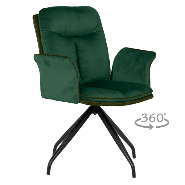 360-градусово въртене Опцията за въртене на 360° и в двете посоки дава на модела допълнително предимство в сравнение с други модели трапезни столове. Свободата на движение ви дава възможност за комуникация с околните, лесно достигане до шкафа с чашите или помощната маса, без да е необходимо да ставате. |