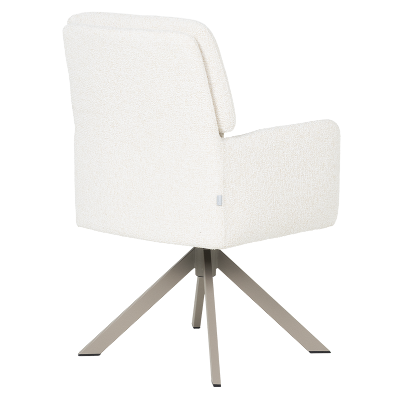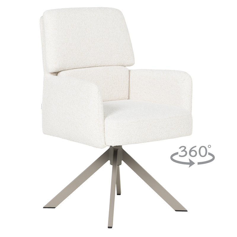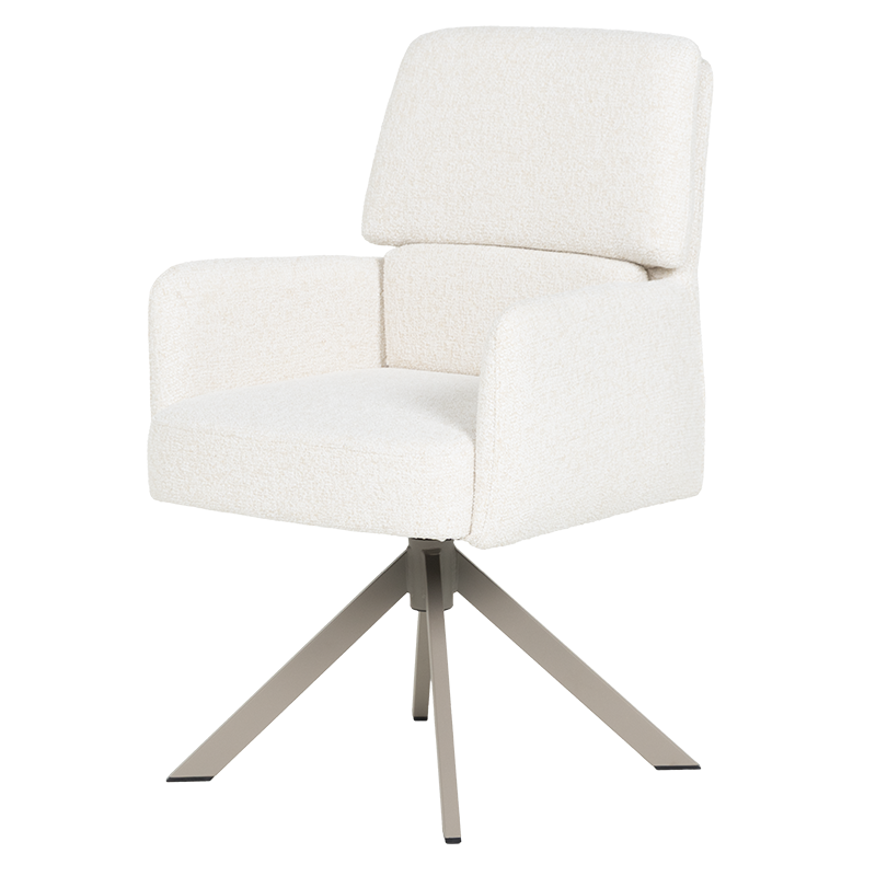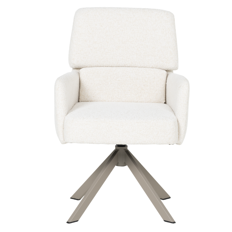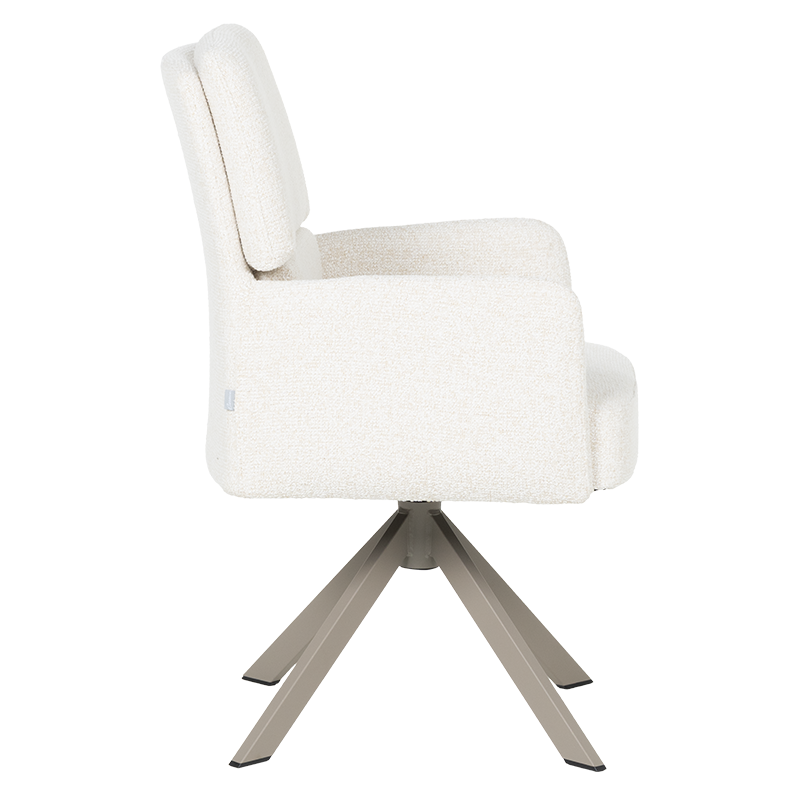 Трапезният стол NARVA съчетава модерен дизайн с изключителна функционалност. Седалката, тапицирана с висококачествена дамаска и оборудвана с покет пружини, предлага ненадминат комфорт, а удобните подлакътници допълват усещането за уют и релакс. Функцията за въртене на 360° с автоматично връщане в начална позиция осигурява практичност и лекота при използване, докато масивната основа от праховобоядисан метал с перлен блясък придава елегантност и стил. Впечатляващата люлееща функция е невероятна екстра, която допълнително засилва усещането за комфорт и релаксация. Столът издържа натоварване до 120 кг, което гарантира неговата устойчивост и дълготрайна употреба, превръщайки NARVA в идеалния избор за всяка съвременна трапезария, където се ценят комфортът и качеството. Пълна информация за размерите и характеристиките на модела ще намерите в таблицата в таб/поле "Техническа информация".