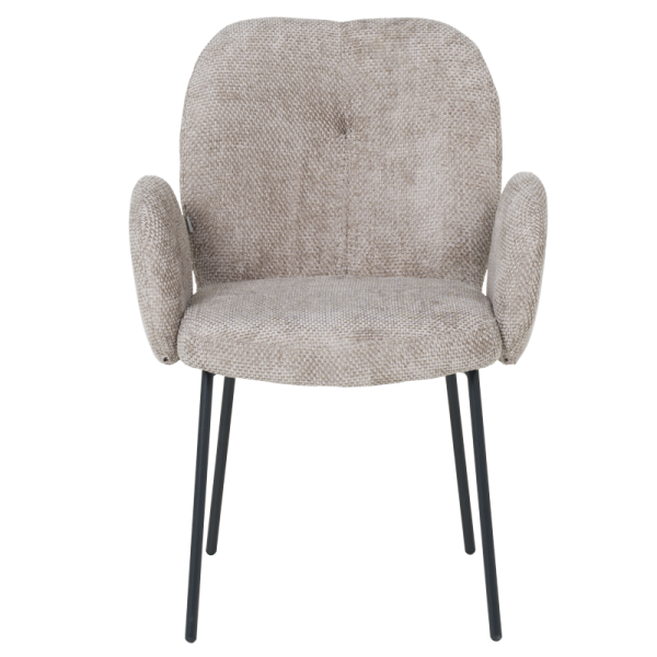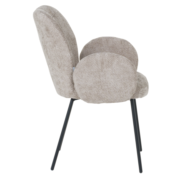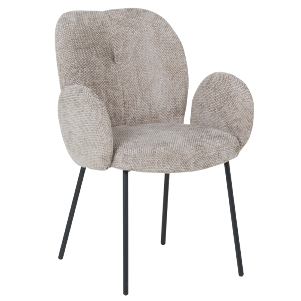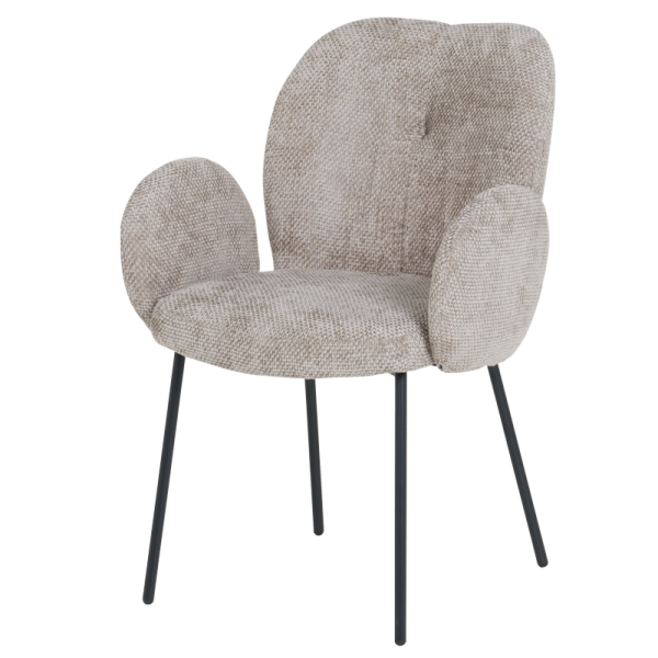 Трапезният стол OLIVER впечатлява с елегантна визия и комфорт. Облечен във висококачествена дамаска с едра текстура, той се откроява с подлакътници в интересна полукръгла форма, които придават стил и изисканост. Здравите крака от праховобоядисан метал осигуряват стабилност и устойчивост. OLIVER е съвременно решение за трапезарии с характер.