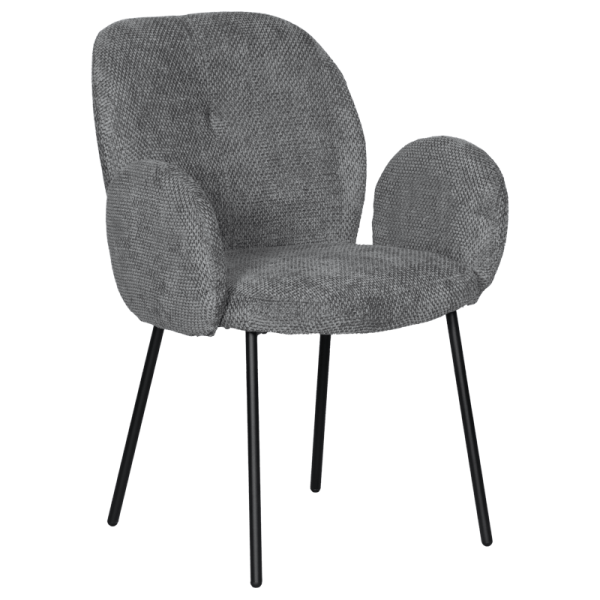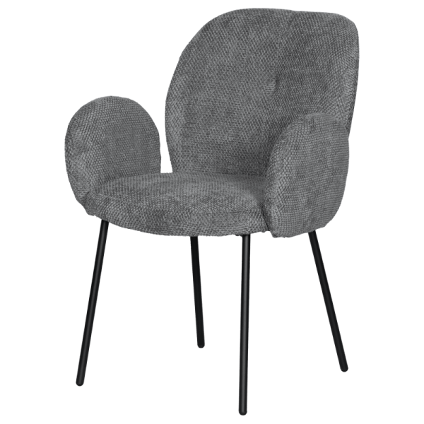 Трапезният стол OLIVER впечатлява с елегантна визия и комфорт. Облечен във висококачествена дамаска с едра текстура, той се откроява с подлакътници в интересна полукръгла форма, които придават стил и изисканост. Здравите крака от праховобоядисан метал осигуряват стабилност и устойчивост. OLIVER е съвременно решение за трапезарии с характер.