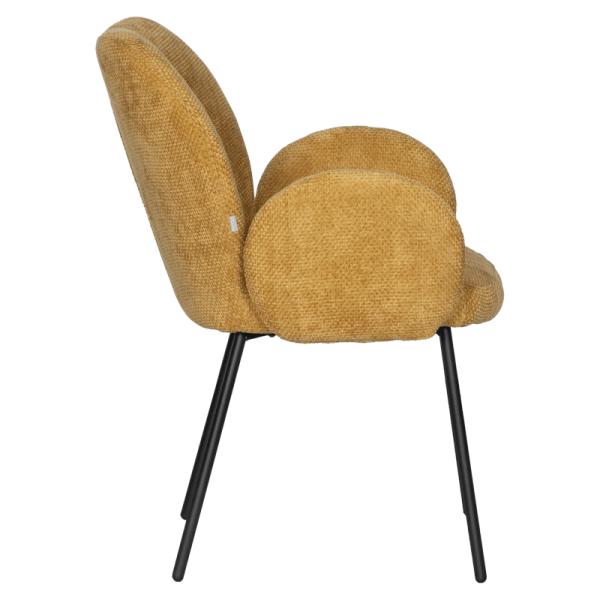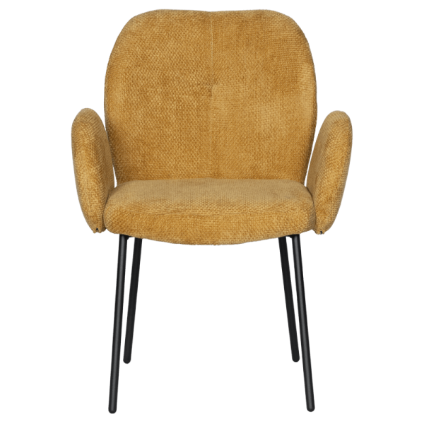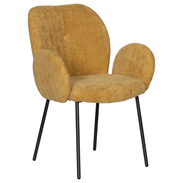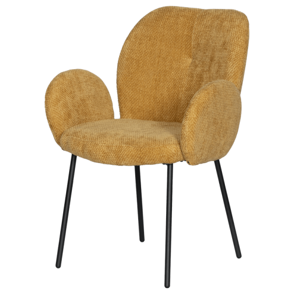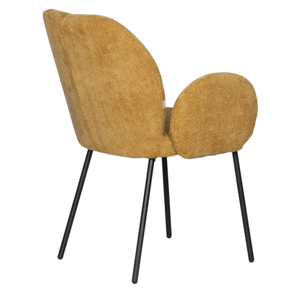 Трапезният стол OLIVER впечатлява с елегантна визия и комфорт. Облечен във висококачествена дамаска с едра текстура, той се откроява с подлакътници в интересна полукръгла форма, които придават стил и изисканост. Здравите крака от праховобоядисан метал осигуряват стабилност и устойчивост. OLIVER е съвременно решение за трапезарии с характер.