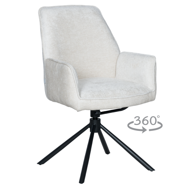 PRATO съчетава модерен дизайн с изключително удобство. Ергономичната седалка с вградени покет пружини и релакс функция предлага комфорт дори при продължително използване. Меката дамаска придава усещане за уют, а металната основа осигурява стабилност. Благодарение на 360-градусовото въртене с автоматично връщане в изходна позиция, PRATO е едновременно функционален и стилен избор за трапезарията.