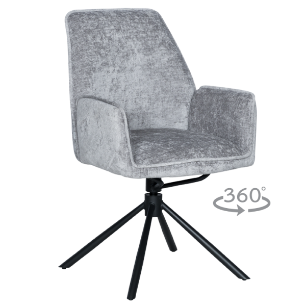 PRATO съчетава модерен дизайн с изключително удобство. Ергономичната седалка с вградени покет пружини и релакс функция предлага комфорт дори при продължително използване. Меката дамаска придава усещане за уют, а металната основа осигурява стабилност. Благодарение на 360-градусовото въртене с автоматично връщане в изходна позиция, PRATO е едновременно функционален и стилен избор за трапезарията.