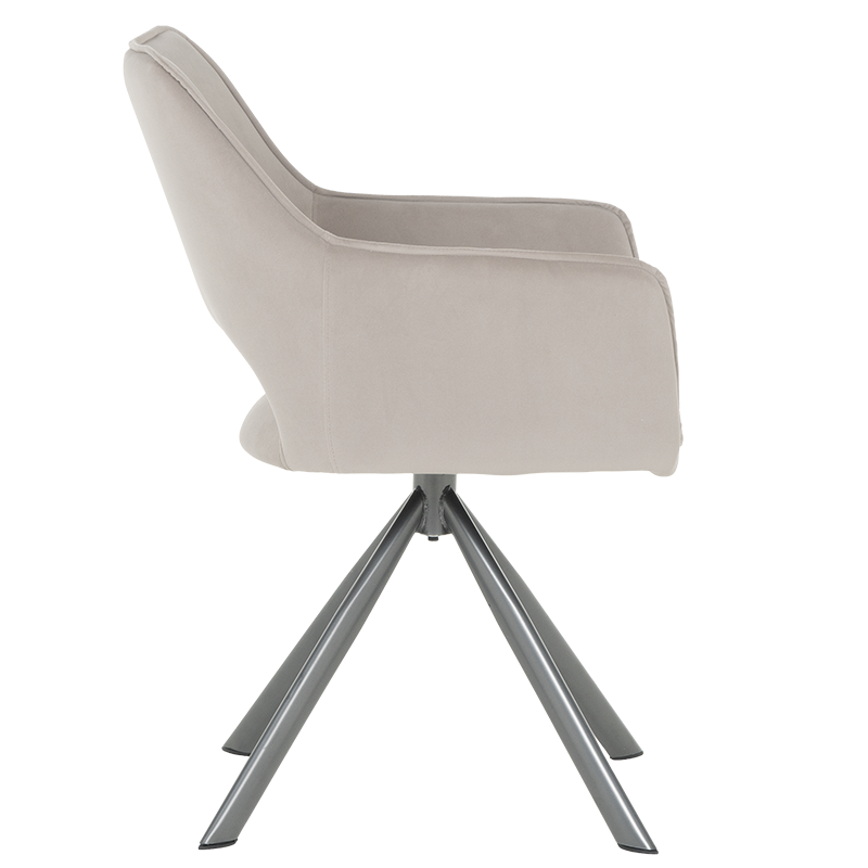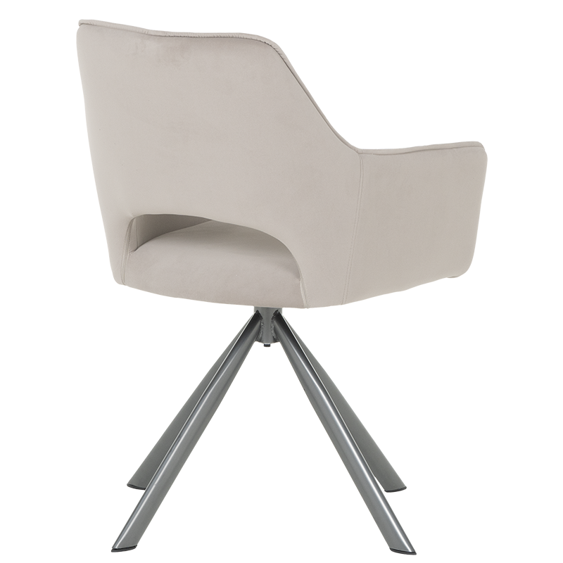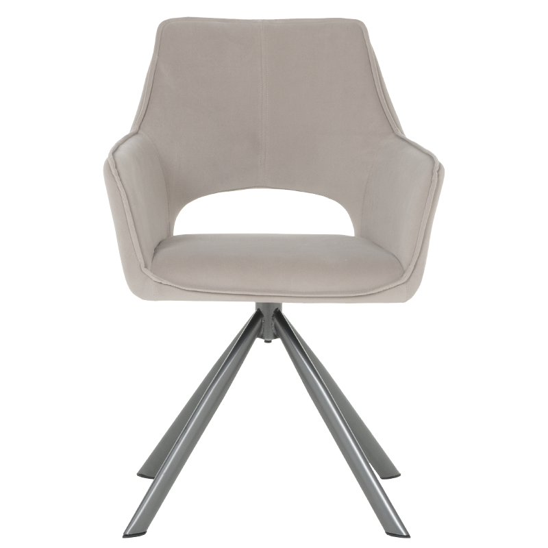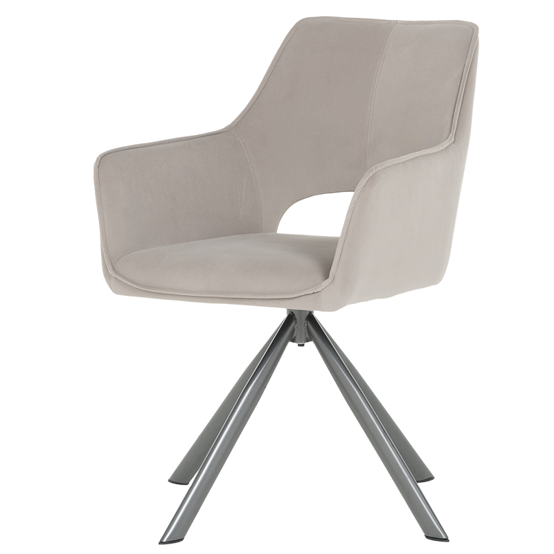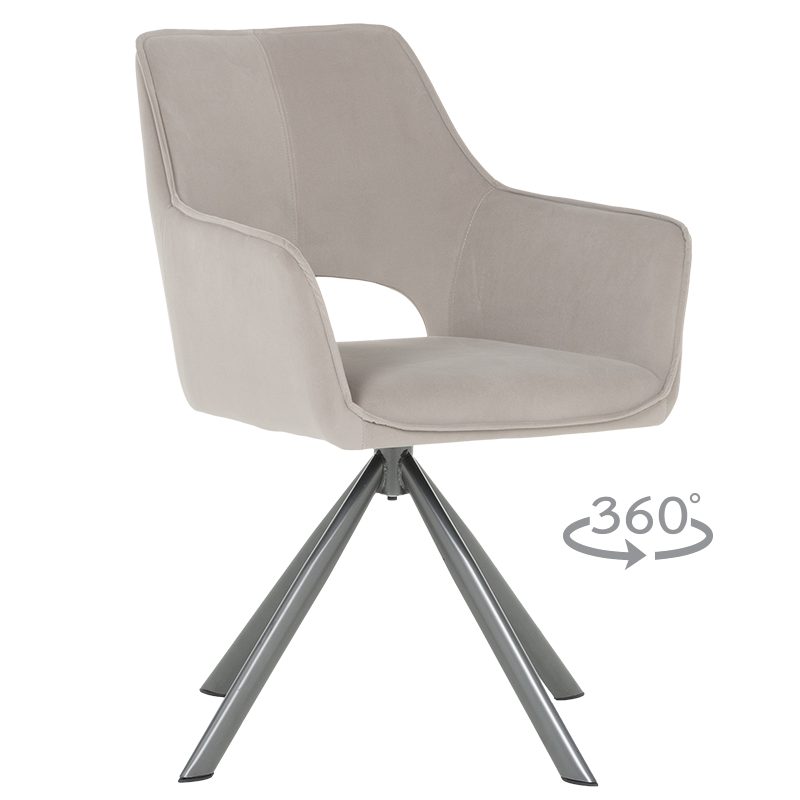 Трапезен стол READING 2 има удобни подлакътници, широка облегалка и комфортна седалка, изработени от висококачествена дамаска. Нестандартната му основа е от праховобоядисан метал. Моделът разполага и с много практична функция за въртене на седалката на 360°. Пълна информация за размерите и характеристиките на модела ще намерите в таблицата в таб/поле "Техническа информация".