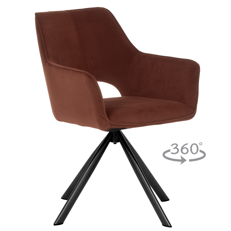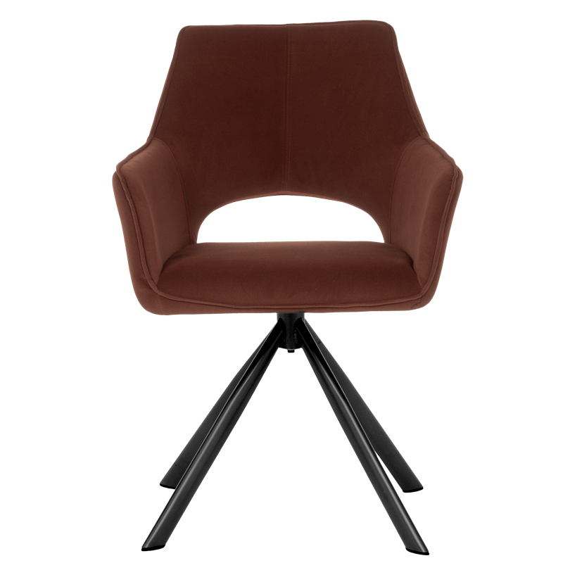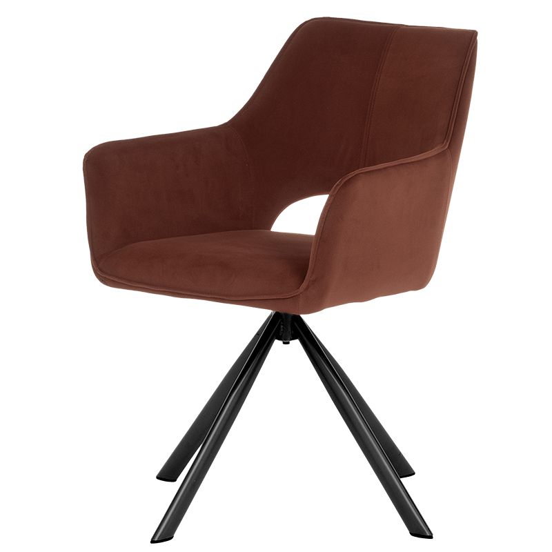 Трапезен стол READING има удобни подлакътници, широка облегалка и комфортна седалка, изработени от висококачествена дамаска. Нестандартната му основа е от праховобоядисан метал. Моделът разполага и с много практична функция за въртене на седалката на 360°. Пълна информация за размерите и характеристиките на модела ще намерите в таблицата в таб/поле "Техническа информация".