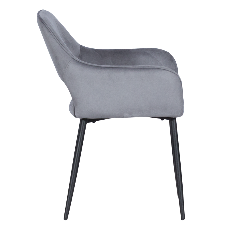 REDCAR P e удобен трапезен стол с модерна и елегантна визия. Той е изработен от луксозна, нежна дамаска и здрави крака от праховобоядисан метал. Пълна информация за размерите и характеристиките на модела ще намерите в таблицата в таб/поле "Техническа информация".
