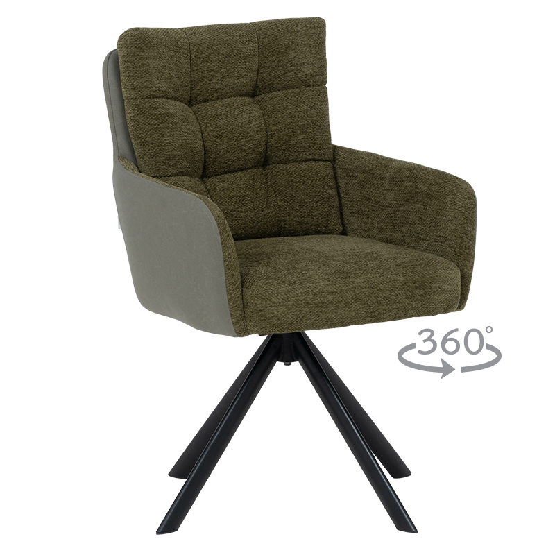 SEFTON е трапезен стол от ново поколение, с функция за въртене на седалката на 360°. Той е модерен, стилен и удобен. За изработката му е използвана дамаска и праховобоядисан метал за краката.Пълна информация за размерите и характеристиките на модела ще намерите в таблицата в таб/поле "Техническа информация".