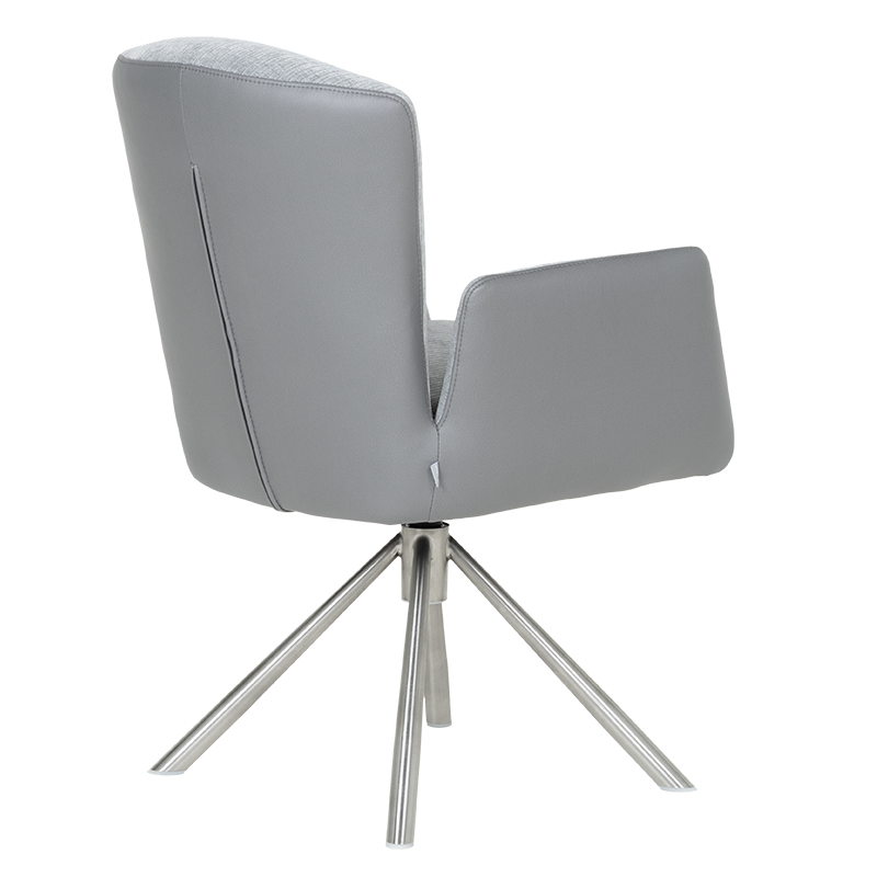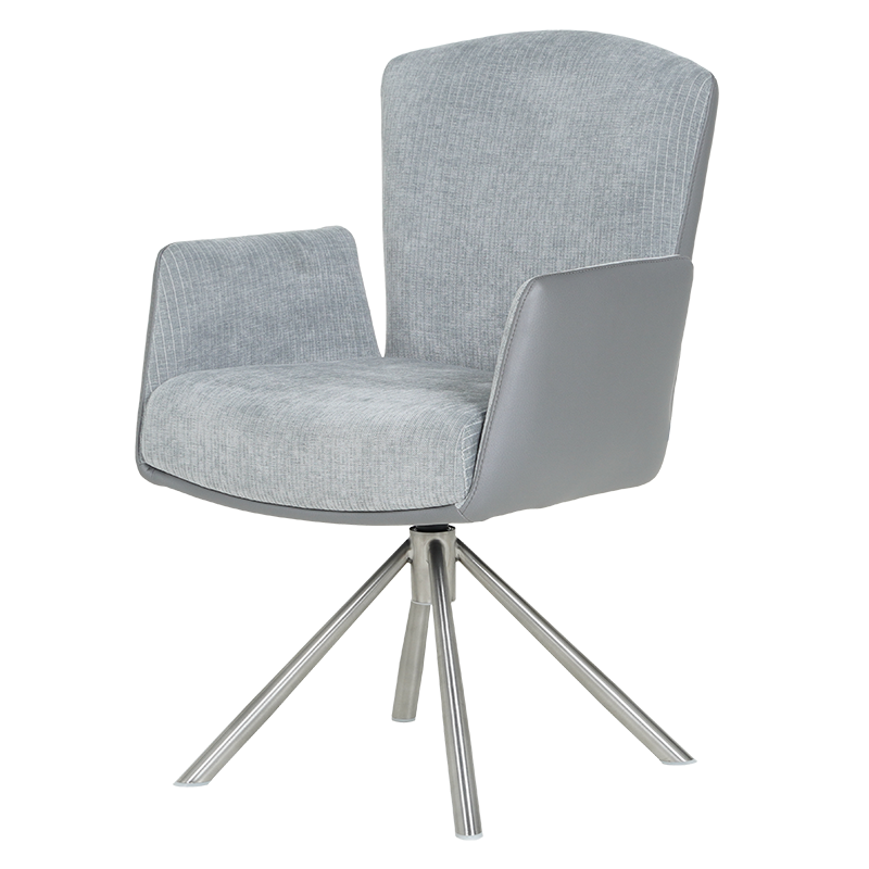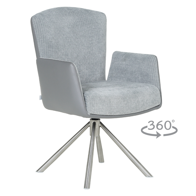 Трапезният стол SINDI впечатлява с модерен дизайн и функционалност, създавайки идеалния баланс между комфорт и стил. Тапицираната седалка с висококачествена дамаска и покет пружини осигурява максимален комфорт, а удобните подлакътници добавят усещане за уют. Една от ключовите функции на SINDI е релакс облегалката с възможност за накланяне назад, която предоставя допълнително удобство и релаксация. Масивната основа от неръждаема стомана придава стабилност и елегантен външен вид. Столът е здрав и издържа до 120 кг, което го прави дълготраен и надежден избор за всяка съвременна трапезария, където се цени както комфортът, така и изтънченият дизайн. Пълна информация за размерите и характеристиките на модела ще намерите в таблицата в таб/поле "Техническа информация".