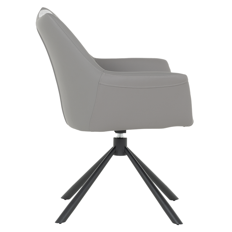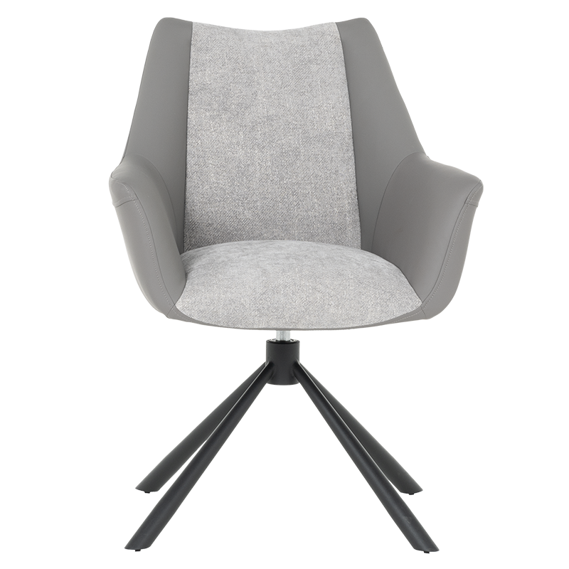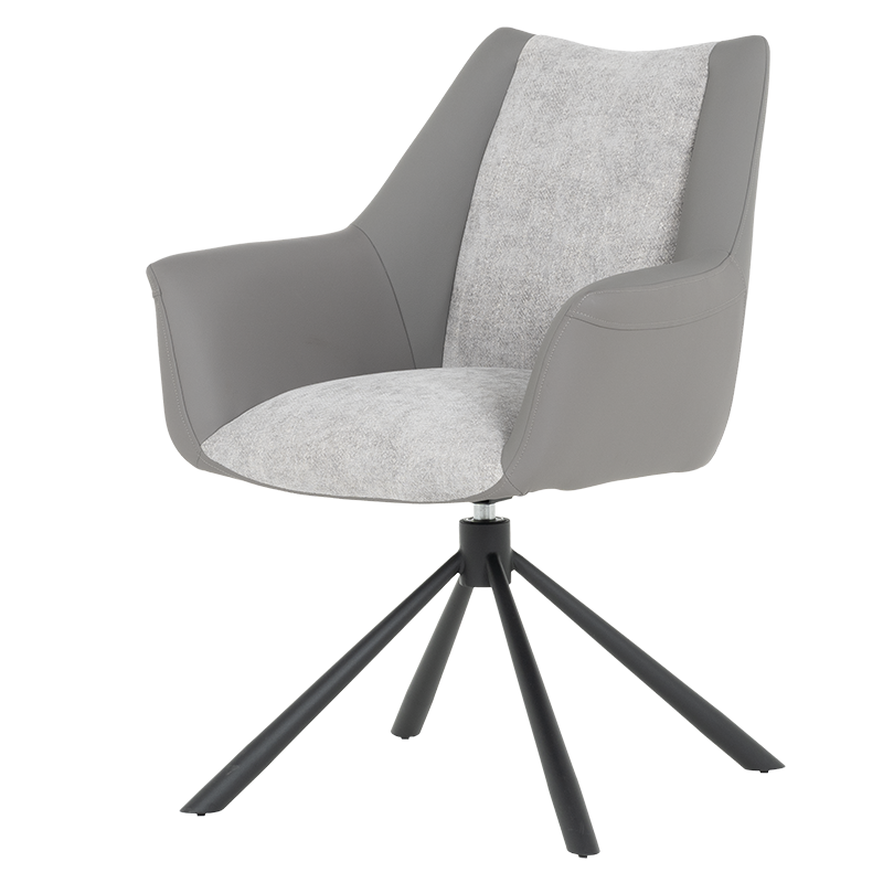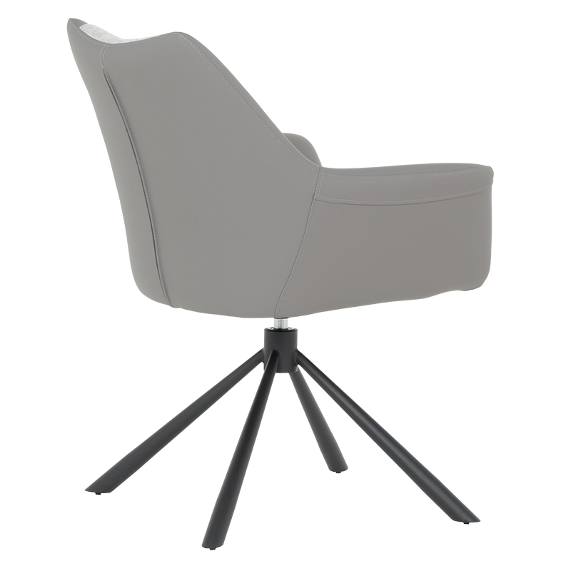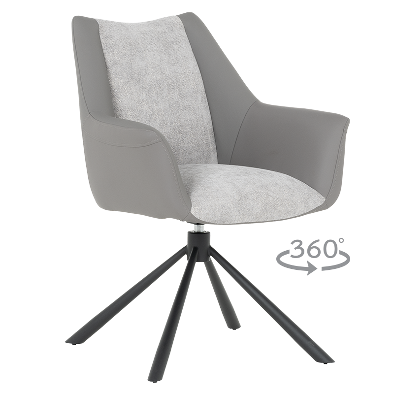 Трапезен стол TEMPE разполага с удобни подлакътници, широки седалка и облегалка, изработени от приятна на допир дамаска и висококачествена силиконова кожа. Интересната му основа е от метал, праховобоядисан в черно. Моделът има функция за въртене на седалката на 360° и връщането ѝ в изходяща позиция. Пълна информация за размерите и характеристиките на модела ще намерите в таблицата в таб/поле "Техническа информация".