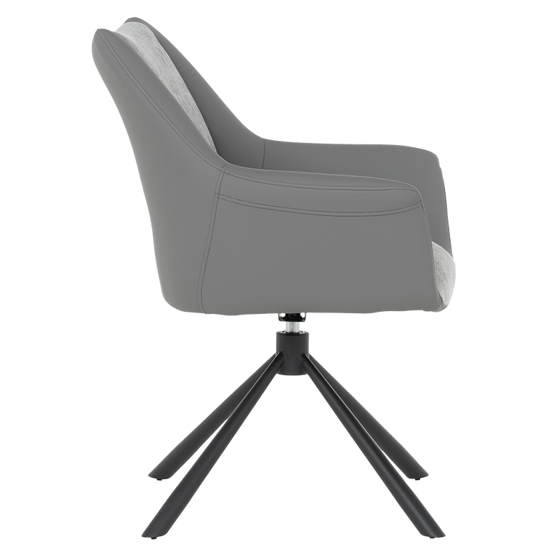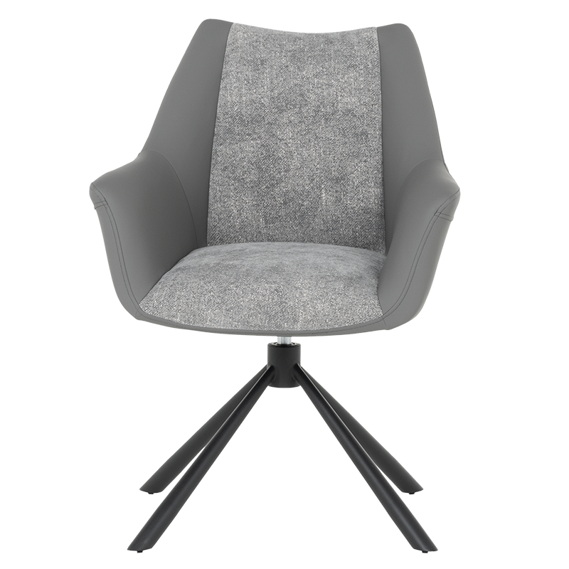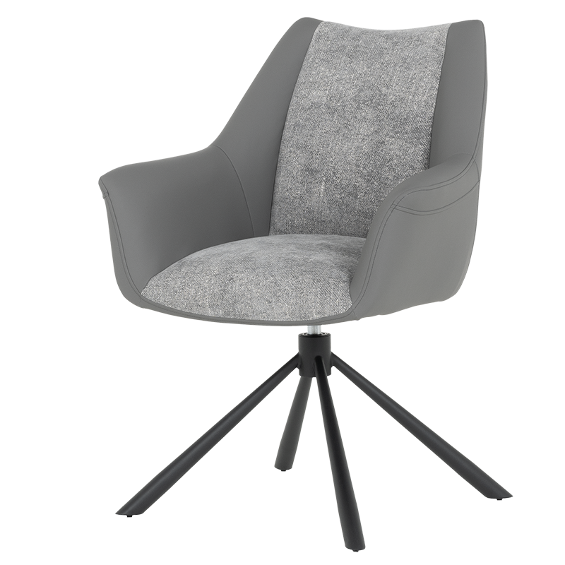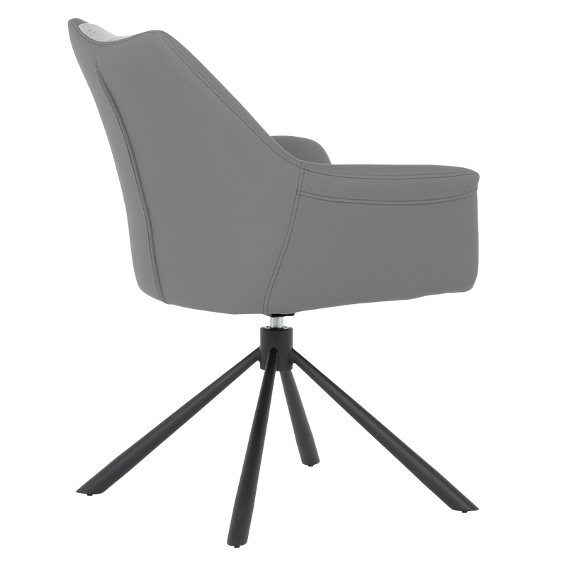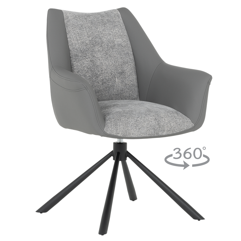 Трапезен стол TEMPE разполага с удобни подлакътници, широки седалка и облегалка, изработени от приятна на допир дамаска и висококачествена силиконова кожа. Интересната му основа е от метал, праховобоядисан в черно. Моделът има функция за въртене на седалката на 360° и връщането ѝ в изходяща позиция. Пълна информация за размерите и характеристиките на модела ще намерите в таблицата в таб/поле "Техническа информация".