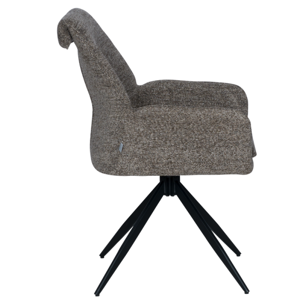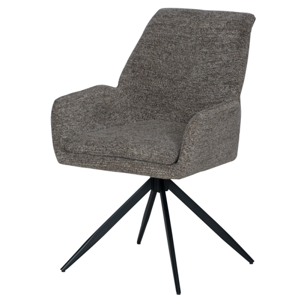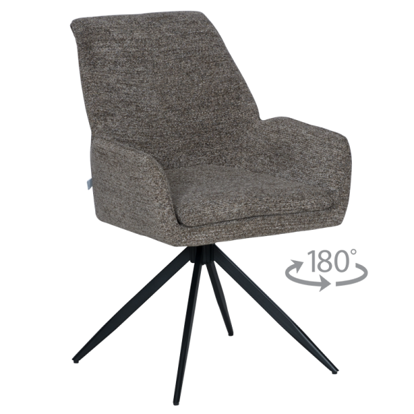 Трапезен стол TERNI съчетава модерен дизайн и практична функционалност. Ергономичната форма и меката дамаска осигуряват комфорт, а специалният механизъм позволява завъртане на 180° с автоматично връщане в изходна позиция – удобство, което превръща всяко сядане в удоволствие. Стабилната метална основа с прахово покритие придава завършеност и стил.