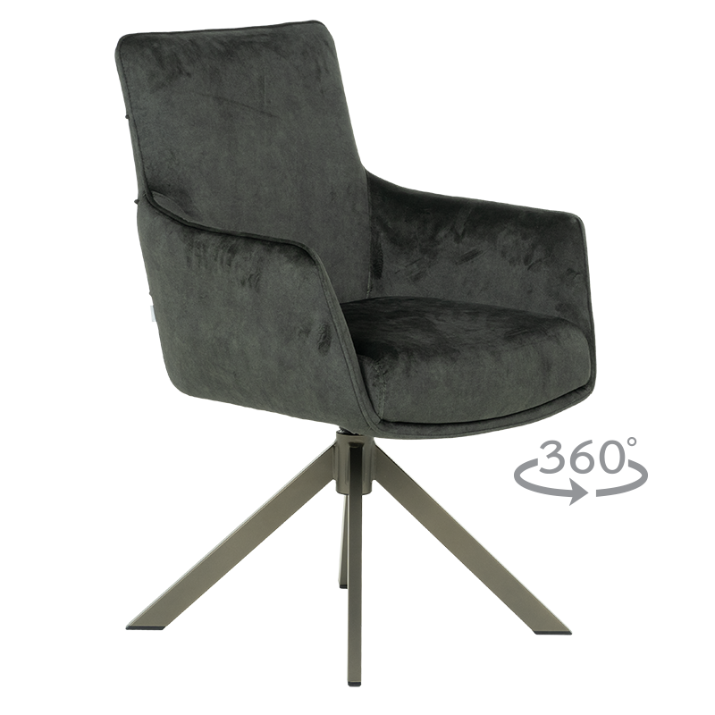 Трапезният стол VALGA 7 впечатлява с модерен силует и внимателно балансирани детайли, които съчетават стил, комфорт и функционалност. Седалката е тапицирана с висококачествена дамаска и оборудвана с покет пружини за оптимално удобство при продължително ползване. Подлакътниците създават допълнително усещане за уют, което прави стола подходящ както за хранене, така и за отмора. Въртящият механизъм с 360° ротация и автоматично връщане в изходна позиция осигурява лекота при използване, а люлеещата функция допринася за истинска релаксация. Металната основа в елегантен тъмен бронз придава характер и съвременен завършек. VALGA 7 е отличен избор за интериор, в който стилът среща комфорта. Пълна информация за размерите и характеристиките на модела ще намерите в таблицата в таб/поле "Техническа информация".