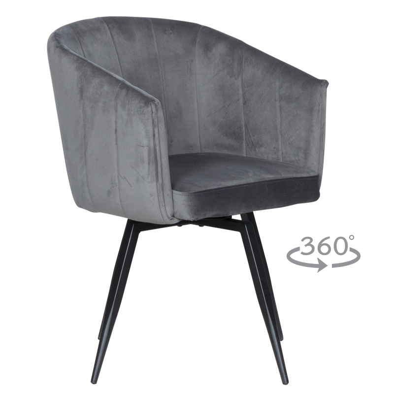 Трапезен стол Venice е подходящо решение за обзавеждането на дома или за интериора на модерни заведения. Седалката му е изработена от устойчива и лесна за поддръжка дамаска, а основата от праховобоядисан метал. За максимален комфорт моделът разполага с функция за завъртане на 360 °. Пълна информация за размерите и характеристиките на модела ще намерите в таблицата в таб/поле "Техническа информация".