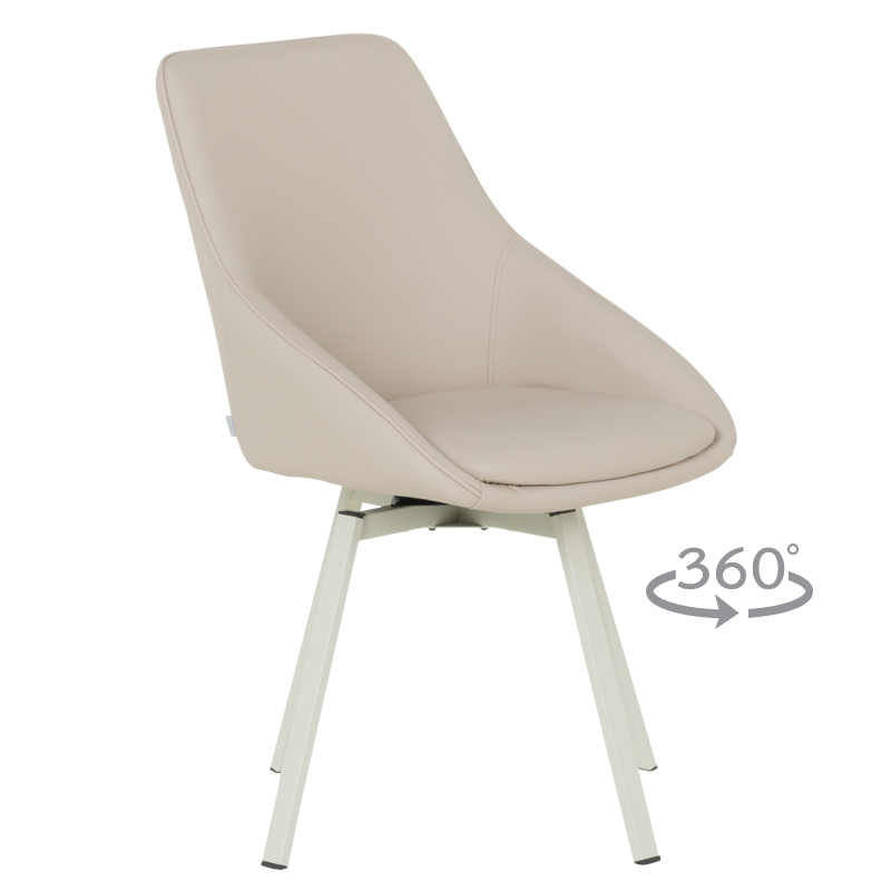 Трапезният стол WIGAN впечатлява със своя стилен и изчистен дизайн, съчетан с практичната функция за въртене на 360°. Изработен е от висококачествена силиконова кожа, която не само придава луксозно усещане, но и е изключително здрава и лесна за поддръжка. Металните крака с прахово боядисване осигуряват допълнителна стабилност и дълготрайност, което прави WIGAN перфектен избор за съвременния дом. Пълна информация за размерите и характеристиките на модела ще намерите в таблицата в таб/поле "Техническа информация".