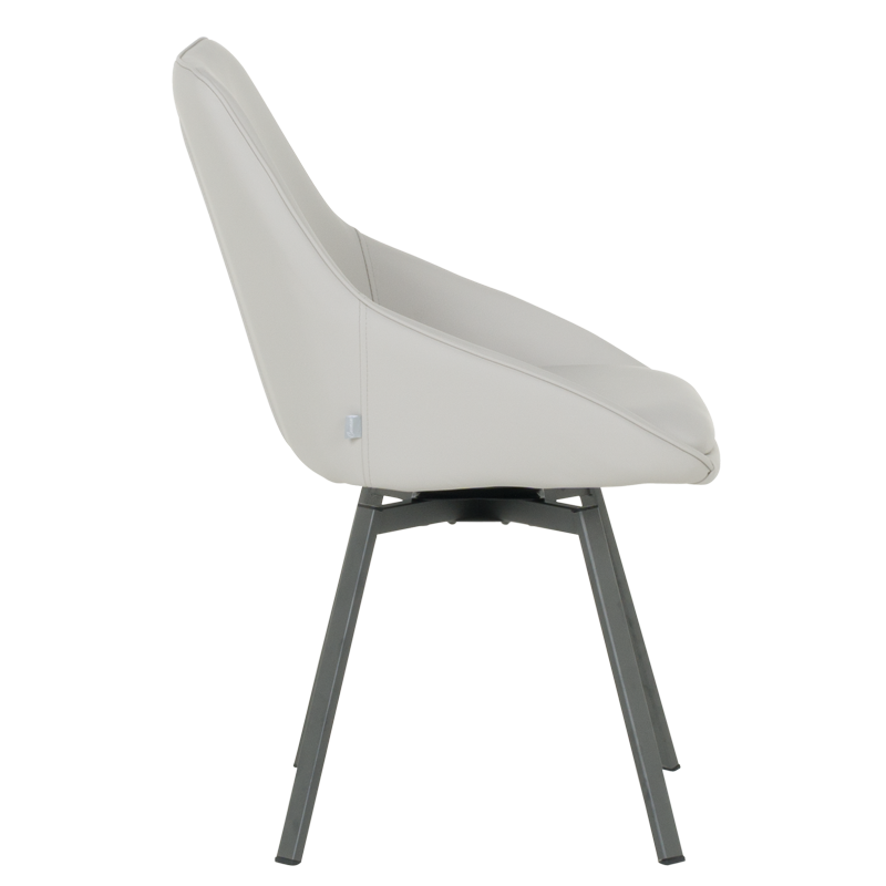 Трапезният стол WIGAN 2 впечатлява с изчистения си и стилен дизайн, допълнен от практичната функция за 360° въртене. Изработен от висококачествена силиконова кожа, столът не само придава луксозно усещане, но е и изключително издръжлив и лесен за поддръжка. Металните крака с прахово боядисване гарантират стабилност и дълготрайност, което прави WIGAN идеален избор за съвременния интериор. Пълна информация за размерите и характеристиките на модела ще намерите в таблицата в таб/поле "Техническа информация".