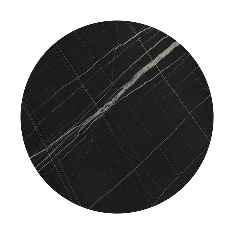 Черният мраморен ефект е символ на елегантност, луксозност и изтънченост. Този класически декор създава престижна атмосфера и се вписва отлично в модерни, минималистични или луксозни интериори. Кръглата форма добавя мекота и елегантност, правейки масата подходяща за различни пространства.