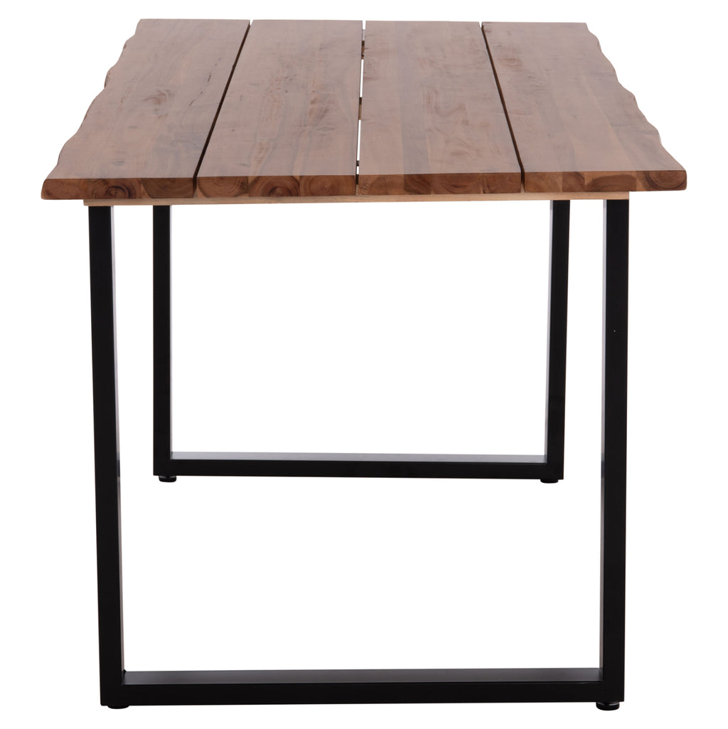 Открийте уникалната градинска маса FRIGGO с повърхност, изработена от естествена масивна АКАКИЯ в цвят NATURAL. Формата е правоъгълна и е поставена върху две черни метални основи. Модерният дизайн се среща с природата и придава вечно и топло усещане на вашето пространство.