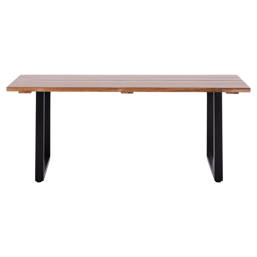 Открийте уникалната градинска маса FRIGGO с повърхност, изработена от естествено масивно АКАЦИЕВО дърво в цвят NATURAL. Формата е правоъгълна и е поставена върху две черни метални основи. Модерният дизайн се среща с природата и придава вечно и топло усещане на вашето пространство.