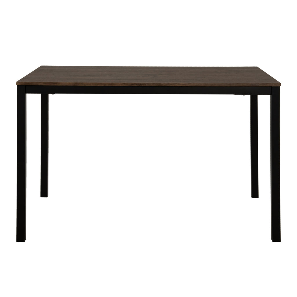 Правоъгълна маса за трапезария, с MDF повърхност с PVC фурнир в цвят тъмен ОРЕХ. Тази повърхност лежи върху черна метална рамка/рамка в правилна форма. Това е красива маса с красив двуцветен цвят, в резултат на което може да се впише естетически в почти всяко подобно пространство.