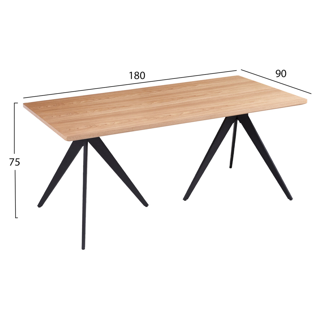ΜΜ9451.03 е правоъгълна маса за трапезария, с повърхност MDF с брезов фурнир в естествен цвят и стил рустик. Тази повърхност е "скосена" (т.е. не е квадратна) и лежи върху две черни метални основи на статив. Това е красива маса с красив двуцветен цвят, в резултат на което може да се впише естетически в почти всяко подобно пространство. РАЗМЕРИ: 180x90x75H см. Дебелина на МДФ: 4см. МАТЕРИАЛИ НА ИЗРАБОТКА: Повърхността на масата е изработена от MDF с фурнир от бреза. МДФ (влакна със средна плътност) е модерен потребителски материал, който често се избира предимно за кухненската част. Основните му характеристики са, че абсорбира минимална влага, важен фактор за пространство като кухнята, има хомогенност в масата си, задоволителни механични свойства, отлична гладкост и много възможности за обработка. ПОДДРЪЖКА: Почистването на прах на редовни интервали и забърсването с влажна кърпа е достатъчно за поддръжка на масата. За повърхността, разбира се, можете да използвате и леки почистващи препарати на пазара. ПРЕДИМСТВА: •Здрава и безопасна конструкция •Модерен минимален дизайн •Качествени строителни материали, които спомагат за лесна поддръжка •Идеален както за домашна, така и за професионална употреба. Продуктът се доставя разглобен с инструкции за монтаж