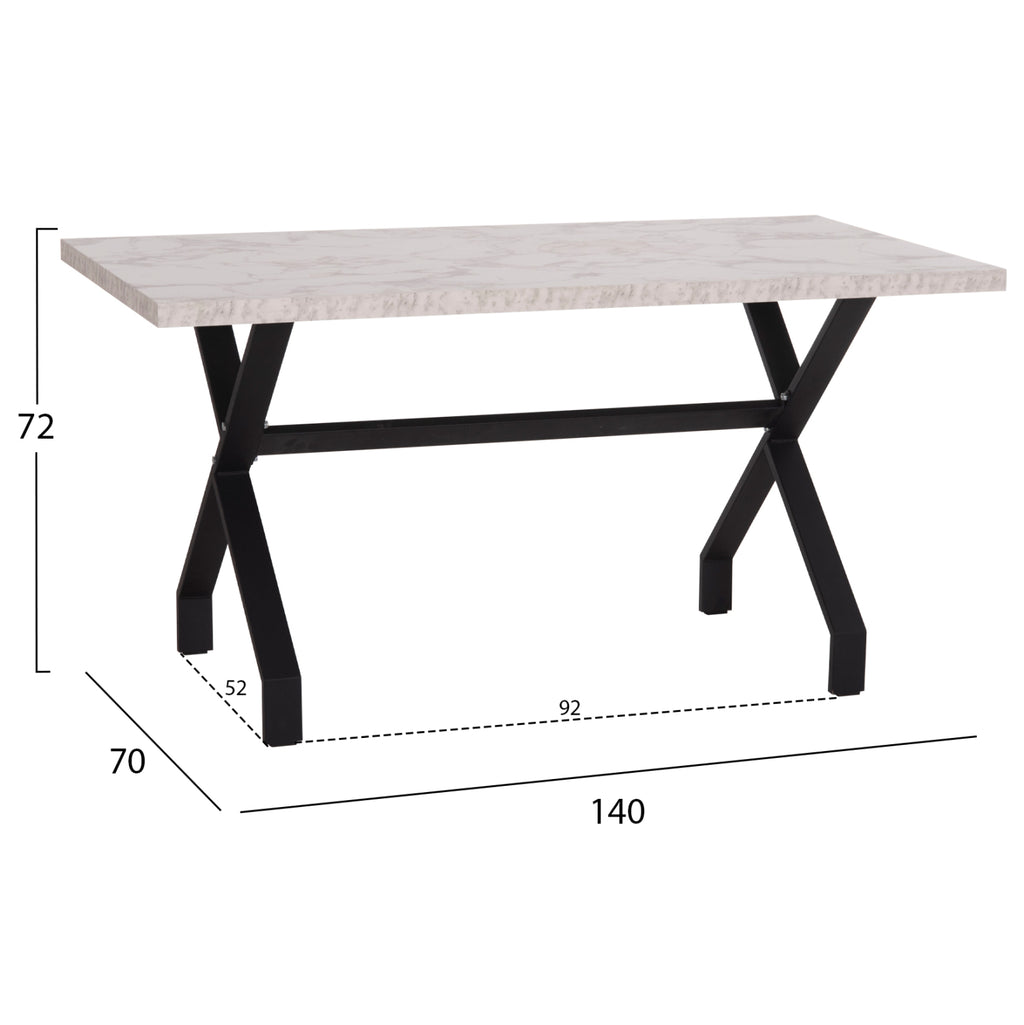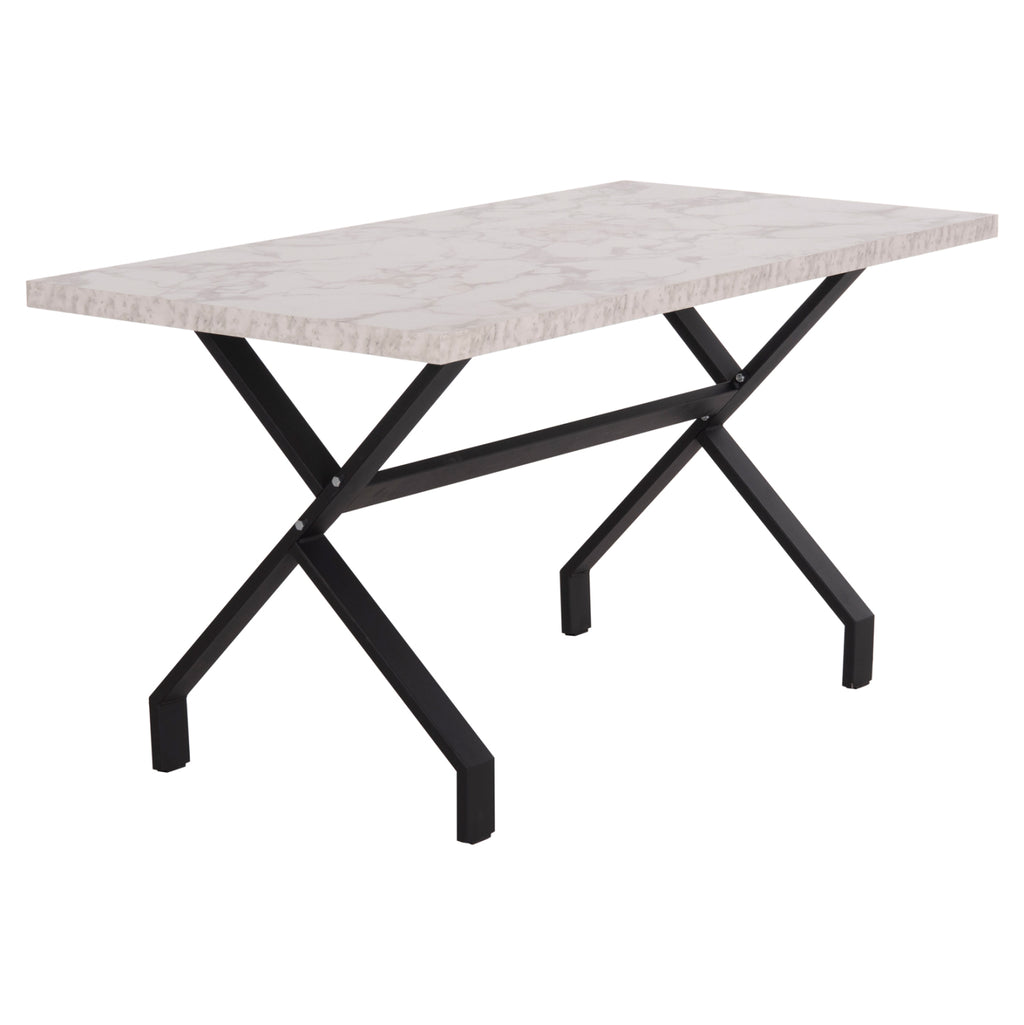 Трапезна маса lana меламин бял мрамор - черни метални крака 140x70x72см