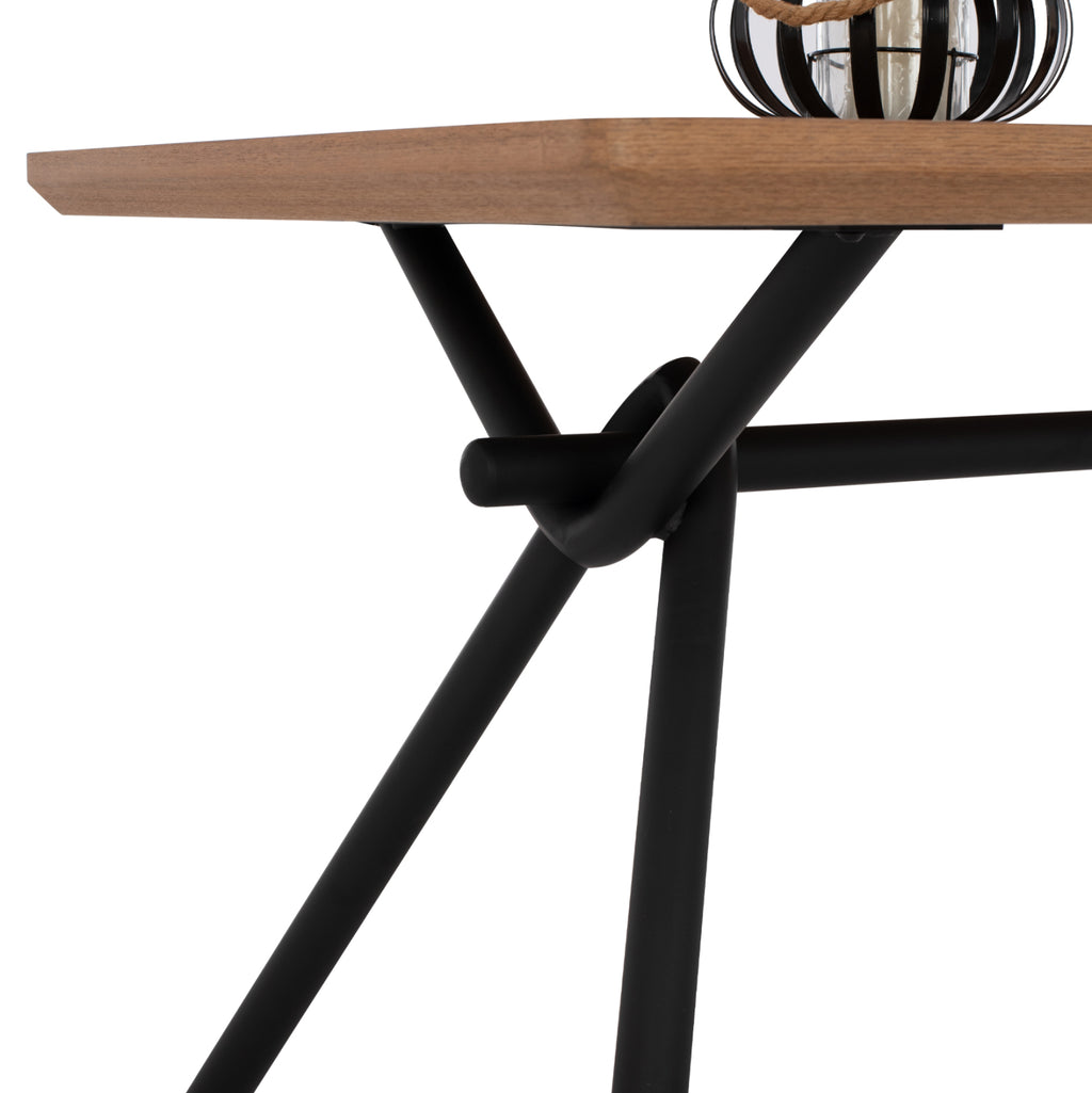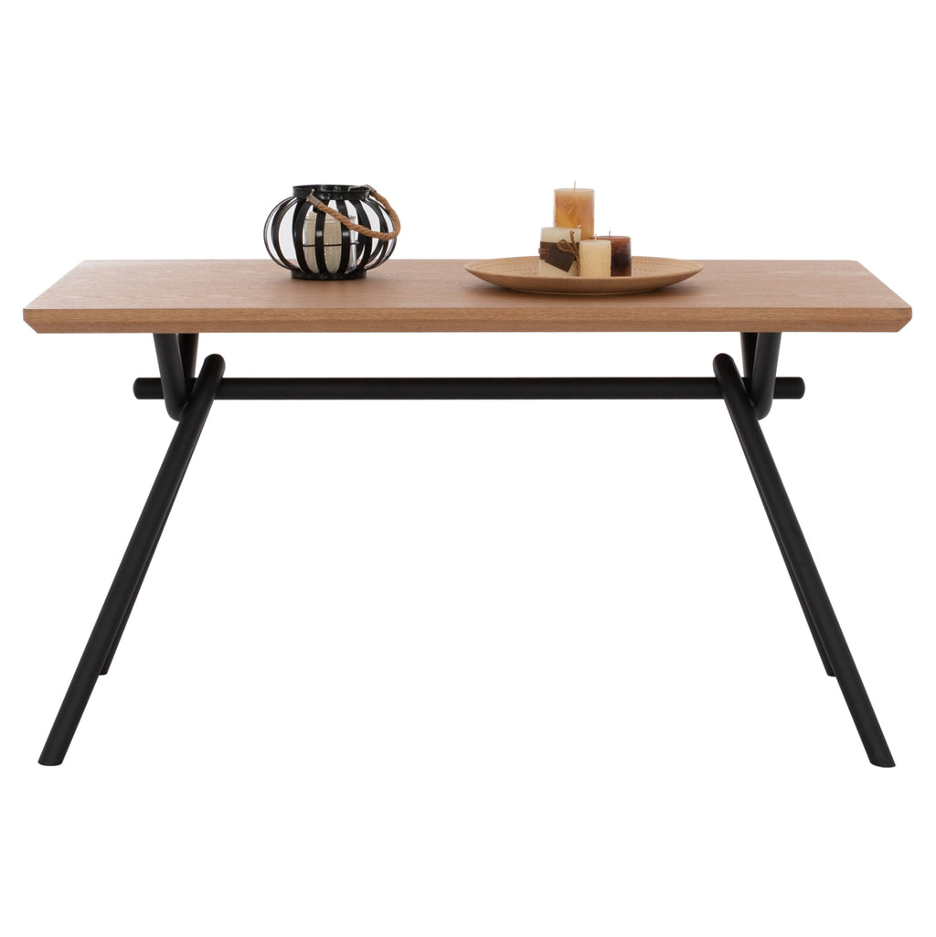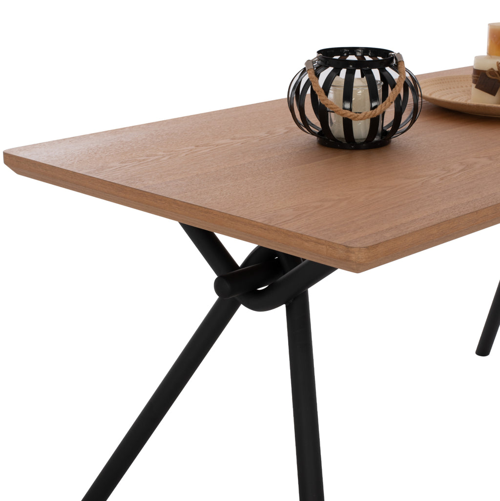 ΜΜ9302.01 е голяма правоъгълна маса за трапезария, с MDF повърхност с дъбов фурнир в цвят МЕДЕН ДЪБ и стил рустик. Тази повърхност е "скосена" (т.е. не е квадратна в ръбовете си) и лежи върху черна метална рамка/рамка с крака във формата на наклонено L. Това е красива маса в големи размери и с красив двуцветен цвят, в резултат на което може да пасне естетически в почти всяко подобно пространство. РАЗМЕРИ: 140x80x75H см. Дебелина на плота: 4см. Дебелина на крака: 4 см. МАТЕРИАЛИ НА ИЗРАБОТКА: Плотът е изработен от MDF с дъбов фурнир. МДФ (влакна със средна плътност) е модерен потребителски материал, който често се избира предимно за кухненската част. Основните му характеристики са, че абсорбира минимална влага, важен фактор за пространство като кухнята, има хомогенност в масата си, задоволителни механични свойства, отлична гладкост и много възможности за обработка. Краката и рамката са метални за по-голяма издръжливост с пластмасови капачки в долната част за защита на пода. ПОДДРЪЖКА: Почистването на прах на редовни интервали и забърсването с влажна кърпа е достатъчно за поддръжка на масата. За повърхността, разбира се, можете да използвате и леки почистващи препарати на пазара. ПРЕДИМСТВА: •Здрава и безопасна конструкция •Модерен минималистичен дизайн •Качествени строителни материали, които спомагат за лесната поддръжка и издръжливостта на масата •Идеална както за домашна, така и за професионална употреба. Продуктът се доставя разглобен с инструкции за монтаж