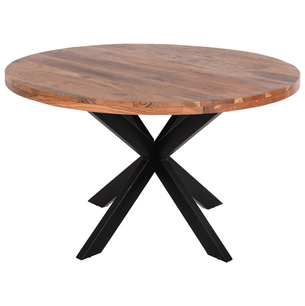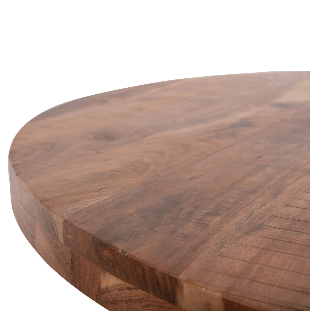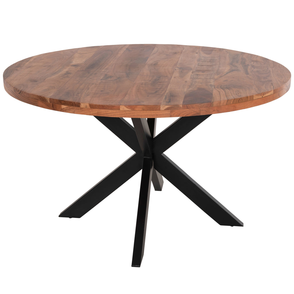 Маса МОНТАНА СУПЕРИОР от акациево дърво е изключителна мебел, която комбинира устойчивост, естествена красота и модерен индустриален стил. Със своя кръгъл дизайн, масивен дървен плот и стабилни метални крака, тя създава топла атмосфера във всяко помещение – от трапезарията до дневната зона.