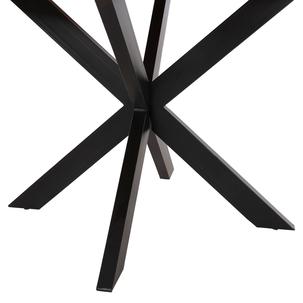 Маса МОНТАНА СУПЕРИОР от акациево дърво съчетава впечатляващ ръчно изработен дизайн с изключителна здравина и натурална естетика. Със своята плътна масивна повърхност от 100% акациево дърво и стабилна метална основа с двойно кръстосани черни крака, тя е идеален избор за модерната трапезария или просторен хол.