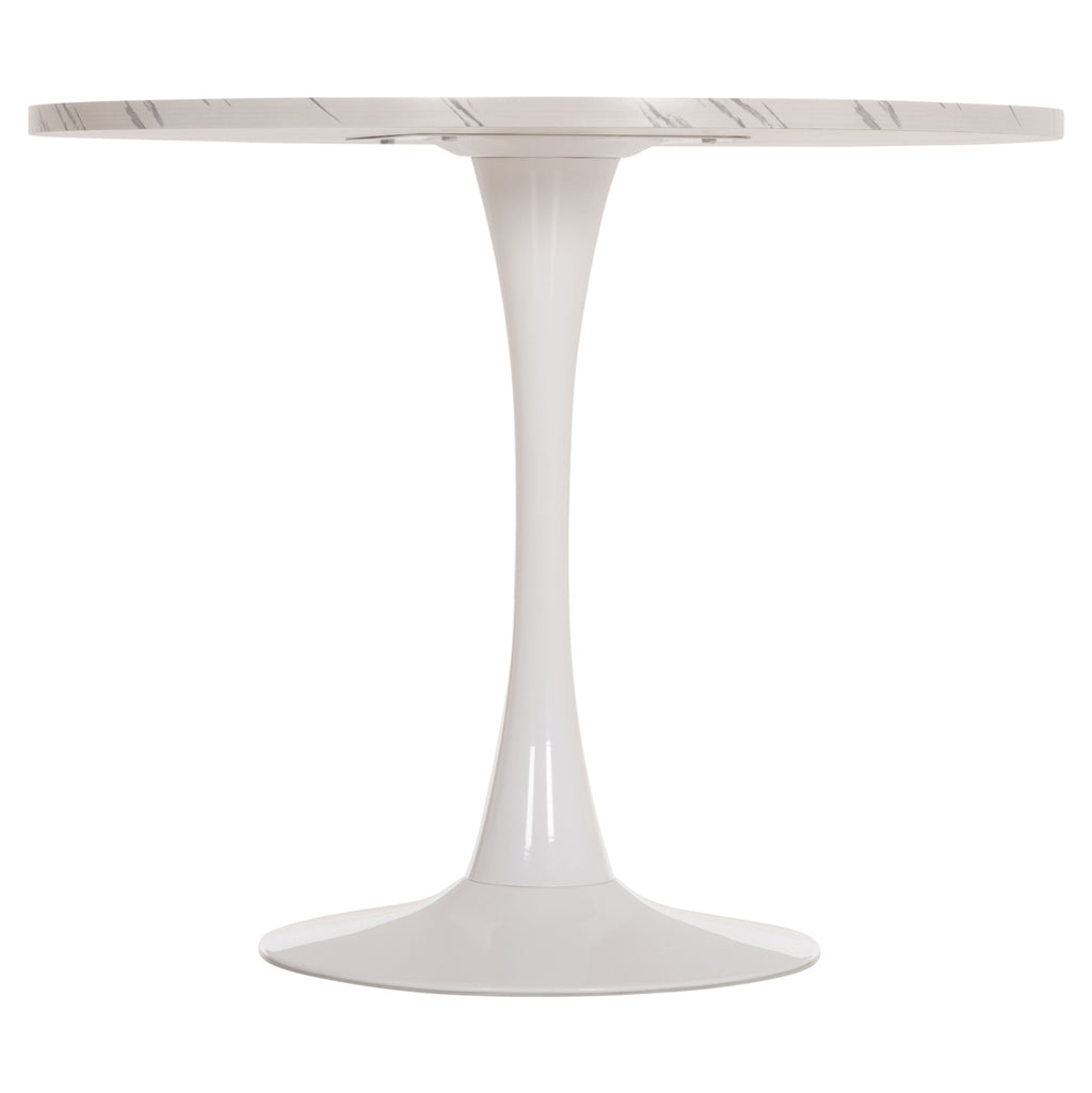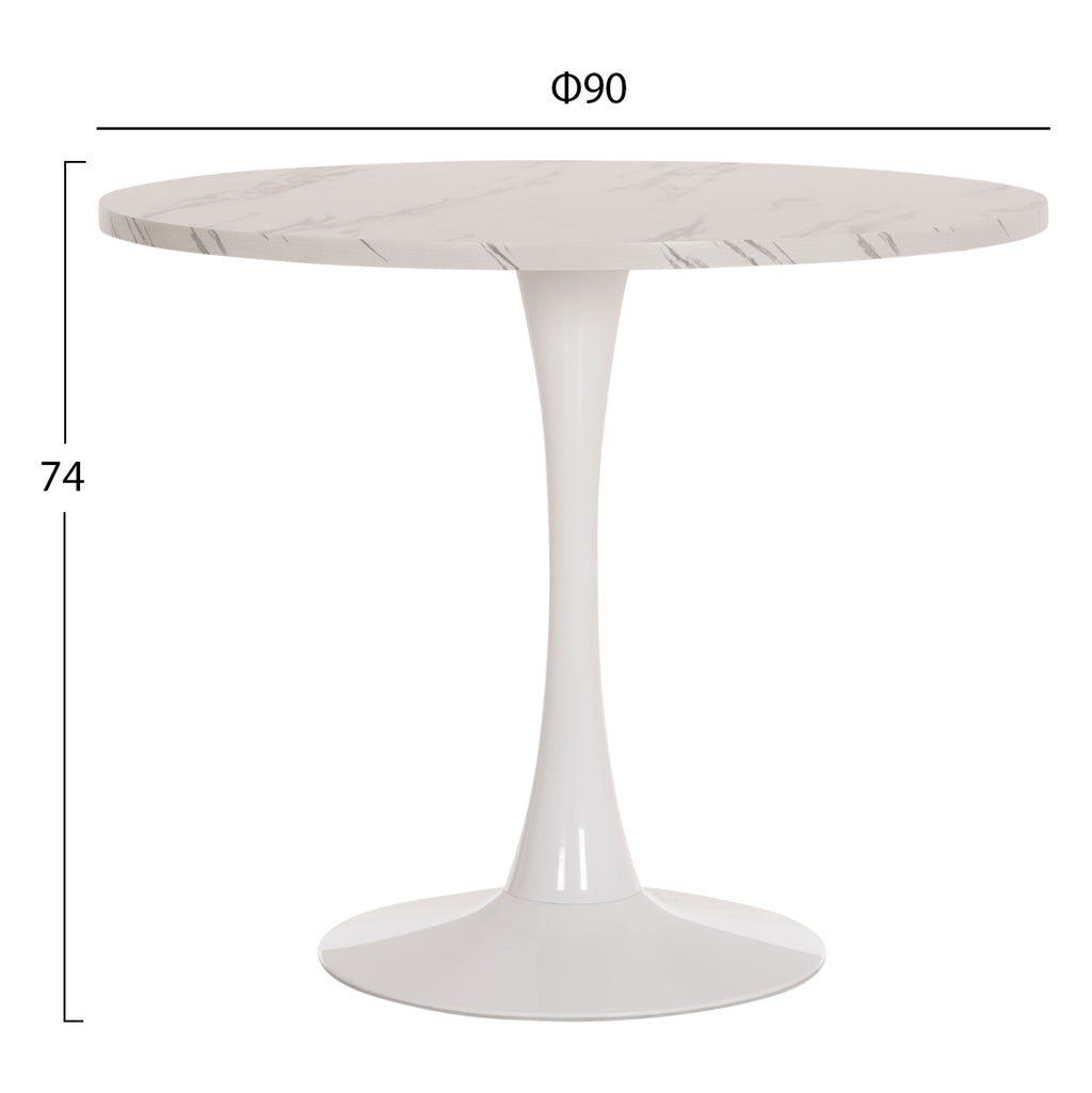 Трапезна маса ROLLO – Кръгла | Цвят бял мрамор ROLLO е модерна и елегантна кръгла трапезарна маса, която съчетава функционалност с естетика. Нейната бяла мраморна повърхност предлага вечна елегантност и яркост на вашето пространство, докато бялата метална цилиндрична основа придава стабилност и минималистичен характер. Идеална за всеки модерен дом, ROLLO предлага приятна атмосфера за хранене, без ъгли или „президентски“ позиции — всеки има равно място на масата! __________________________________________ Характеристики: •Форма: Кръгла (Ротонда) •Цвят на повърхността: Бял мрамор •Цвят на основата: Бял •Материал на повърхността: Висококачествен меламин •Материал на основата: Метал •Размери: Φ90 ? 74Y см. •Дебелина на повърхността: 2.5 см. •Диаметър на основата: Φ50 см. __________________________________________ Материали за конструкция: •Меламин: Устойчив на надраскване, износване и петна. Лесна за поддръжка и идеална за ежедневна употреба. •Метална колона: Предлага стабилност и издръжливост, с модерен цилиндричен дизайн. __________________________________________ Поддръжка: Лесно се почиства с влажна кърпа или мек препарат. Не изисква специални грижи – идеална за бързо и лесно почистване. __________________________________________ Предимства: • Елегантен, модерен дизайн за всеки стил на декорация • Кръгла форма без ъгли за удобна комуникация • Стабилна метална основа за увереност и безопасност • Устойчива повърхност на износване и петна • Идеален размер за 4 души ______________________________________ Масата ROLLO е идеалният избор за тези, които търсят комбинация от елегантност, практичност и качество – мебел, която ще подобри декора на вашата трапезария със стил. *Продуктът се доставя несглобен ** Цветопредаването на продукта може леко да се различава от фотографското му представяне на вашия екран.