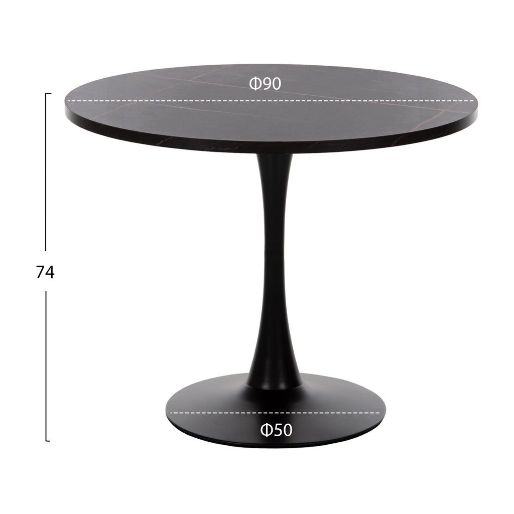 ROLLO е модерна кръгла трапезарна маса (ротонда) с меламинова повърхност в цвят ЧЕРЕН МРАМОР. Повърхността се поддържа от метална цилиндрична колона MAYΗ, която е с подходящите размери, за да поддържа адекватно масата. Масите тип „ротонда“ са особено практични и красиви, защото нямат плотове и „водещи елементи“, нито ъгли или крака, които много пъти създават неудобни ситуации. И накрая, тази конкретна ротонда е със задоволителни размери, което я прави отправна точка за вашата трапезария. РАЗМЕРИ: Φ90 Χ 74H см Дебелина на повърхността: 2,5 см Диаметър на кръглата основа на пода: Φ50 см. МАТЕРИАЛИ ЗА КОНСТРУКЦИЯ: Опорната колона е метална, а повърхността е изработена от меламин с отлично качество. . Меламинът е вид дървесина под формата на плочи от дървесни частици. Плочите от дървесни частици са продукти, които имат формата на плоча (панел). Като материал, той е много издръжлив и много твърд. Следователно, той е синтетичен материал с много твърда повърхност, което го прави много устойчив на драскотини, износване и петна. ПОДДРЪЖКА: Редовното почистване с прах и избърсване с влажна кърпа е достатъчно за поддържане на ротондата. За повърхността, разбира се, можете да използвате и меки почистващи препарати, които се предлагат в търговската мрежа. ПРЕДИМСТВА: • Стабилна и безопасна конструкция • Красив дизайн • Може да обслужва 4 души • Идеална за трапезарията у дома, но също така и за професионални пространства, като ресторанти, хотели и банкетни зали като цяло. *Продуктът се доставя несглобен ** Цветопредаването на продукта може леко да се различава от фотографското му представяне на вашия екран.