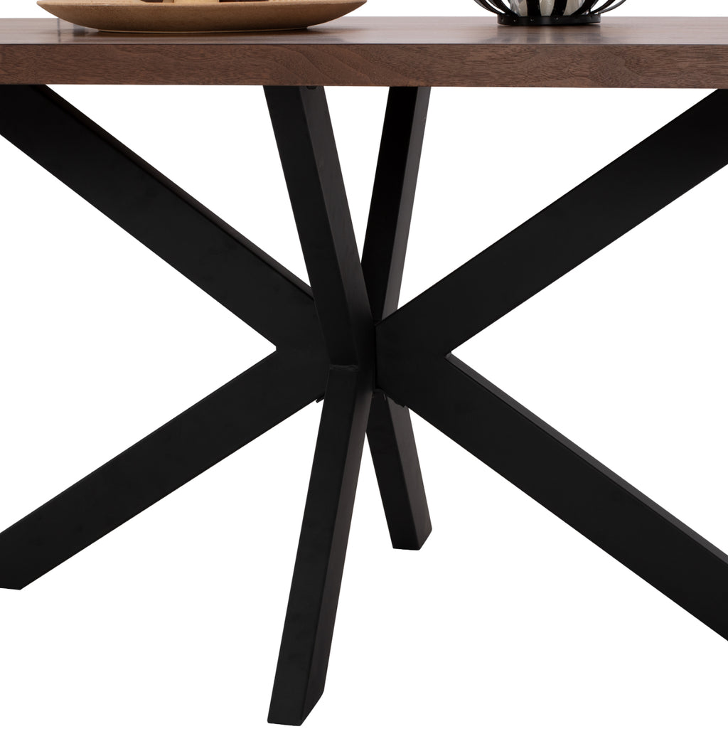 КГ9311.02 е голяма правоъгълна маса за хранене, с повърхност, изработена от MDF с орехов фурнир и цвят ОРЕХ в рустик стил. Тази повърхност е поддържана от черни метални двойно кръстосани крака. Това е внушителна маса с големи размери и красиво двуцветно покритие, в резултат на което естетически може да се впише в почти всяко подобно пространство.