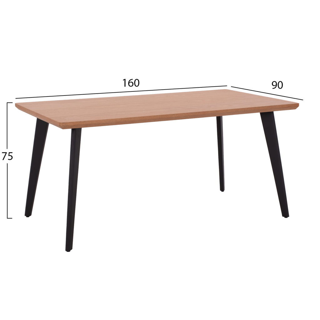 ΜΜ9301.01 е голяма правоъгълна маса за трапезария, с MDF повърхност с дъбов фурнир в цвят МЕДЕН ДЪБ и стил рустик. Тази повърхност е „скосена“ (т.е. не е квадратна в ръбовете си) и лежи върху черна метална рамка/рамка с 4 правилни крака. Това е красива маса в големи размери и с красив двуцветен цвят, в резултат на което може да се впише естетически в почти всяко подобно пространство. РАЗМЕРИ: 160x90x75H см. Дебелина на плота: 4см. МАТЕРИАЛИ НА ИЗРАБОТКА: Плотът е изработен от MDF с дъбов фурнир. МДФ (влакна със средна плътност) е модерен потребителски материал, който често се избира предимно за кухненската част. Основните му характеристики са, че абсорбира минимална влага, има хомогенност в масата си, задоволителни механични свойства, отлична гладкост и много възможности за обработка. Краката са метални за по-голяма издръжливост и имат регулатори отдолу за по-голяма гъвкавост при поставяне на масата. ПОДДРЪЖКА: Почистването на прах на редовни интервали и забърсването с влажна кърпа е достатъчно за поддръжка на масата. За повърхността, разбира се, можете да използвате и леки почистващи препарати на пазара. ПРЕДИМСТВА: •Здрава и безопасна конструкция •Модерен минималистичен дизайн •Качествени строителни материали, които спомагат за лесната поддръжка и издръжливостта на масата •Идеална както за домашна, така и за професионална употреба. Продуктът се доставя разглобен с инструкции за монтаж