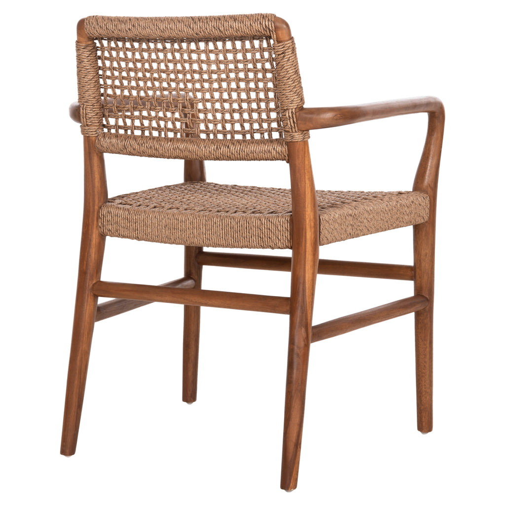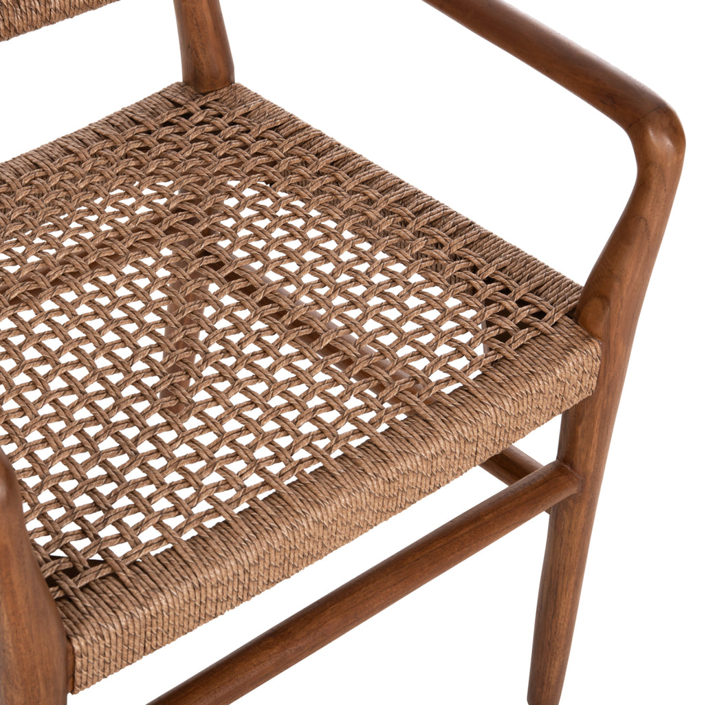 Кресло ROSCO, както за професионална, така и за домашна употреба, е с високо качество. Красивата му рамка е изработена от качествена дървесина в цвят ОРЕХ, а средно високата облегалка и широката седалка са изработени от майсторски изплетено VIRO въже. Дизайнерските линии на фотьойла са елегантни, като характерна особеност са заоблените ъгли на подлакътниците. Фотьойлът идеално ще допълни маса с подобно качество и естетика.
