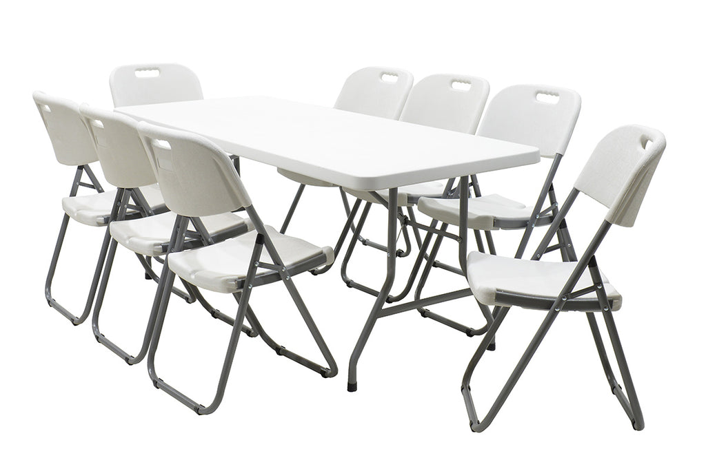 Търговска сгъваема маса за къмпинг Aprilia в цвят бял гранит 183x76x74см