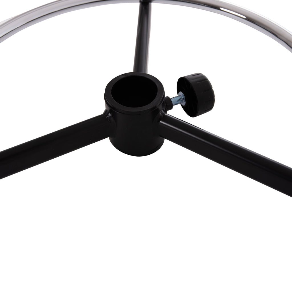Ако кръглата поставка за крака на вашия повдигнат офис стол КГ1042 и КГ1043 се е счупила или просто искате да я смените по някаква причина, тогава вземете тази резервна поставка за крака с три спици, изработена от хромиран метал. Монтажният отвор на амортисьора има пластмасова обшивка със скоба. РАЗМЕРИ: Φ44.5см. Отвор за амортисьор: Φ5см.